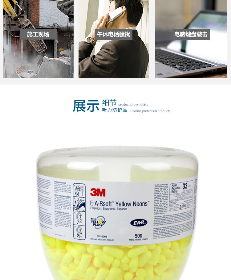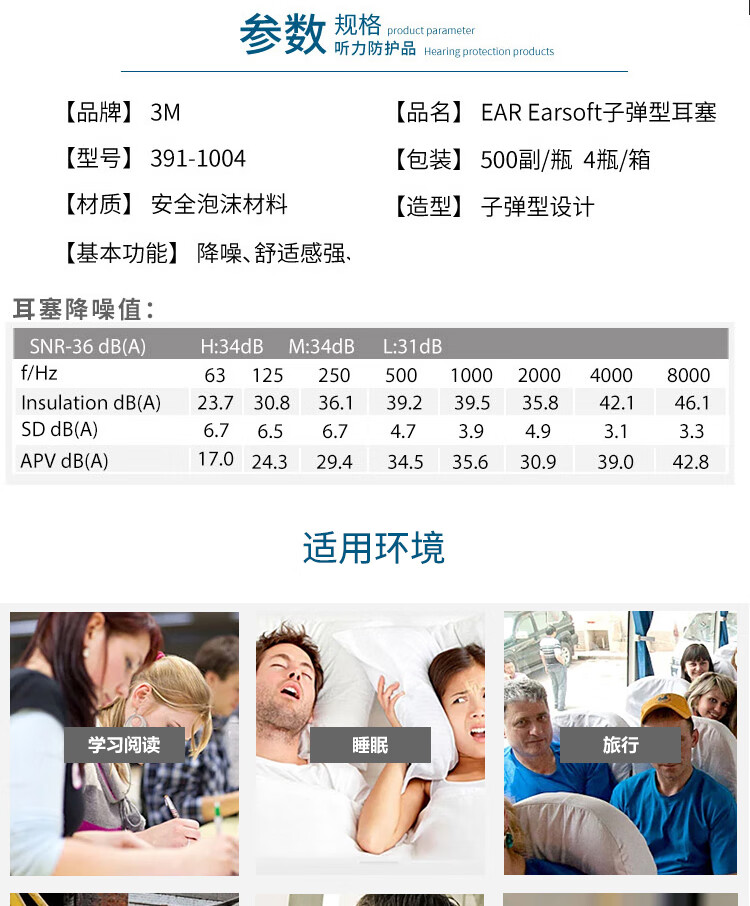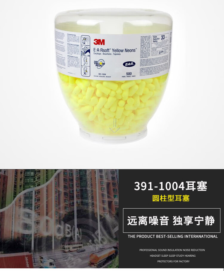 3M 高降噪子弹型耳塞 391-1004 泡棉材料 配合耳塞分配器使用 1副