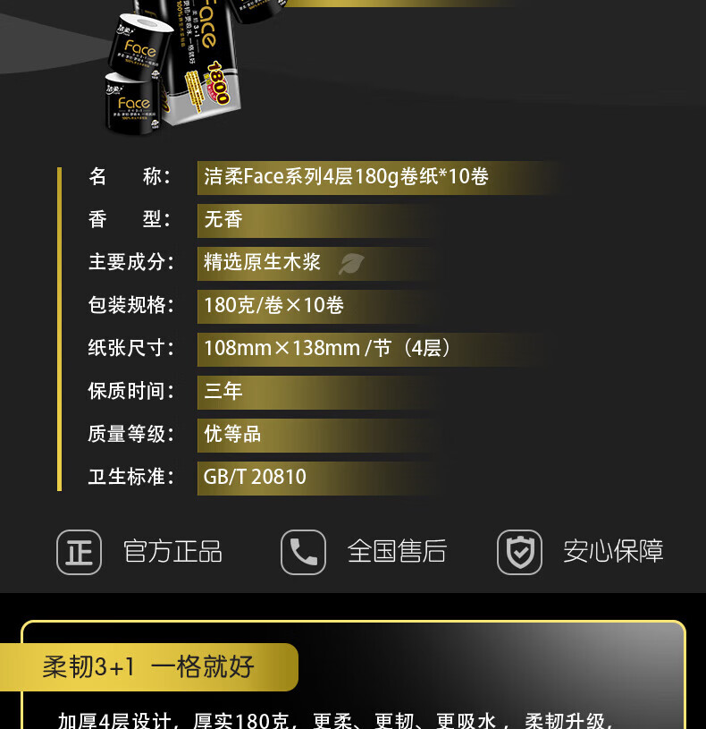 洁柔 Face柔韧卷纸 BJ095-10 4层 180g 10卷 1提