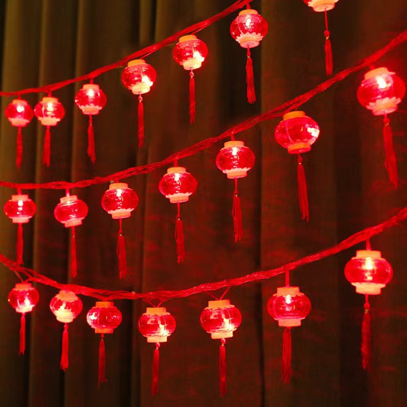 国产通用 流苏红灯笼串 10米100灯 插电款 1件