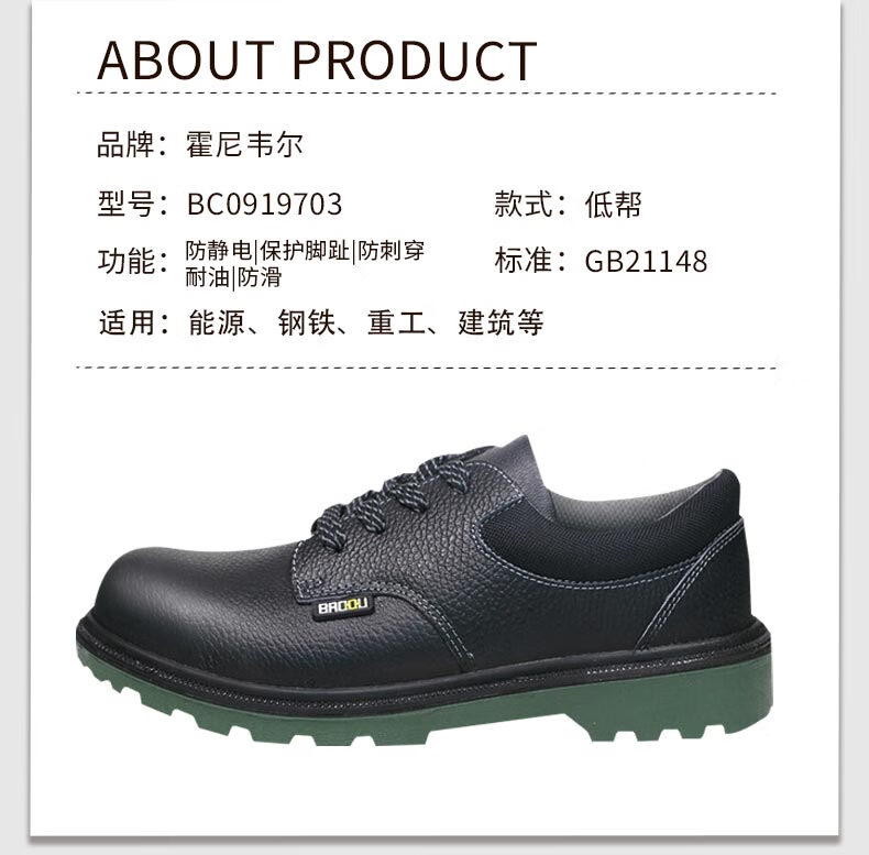 • 商品名称:霍尼韦尔 ECO经济款防砸防刺防静电低帮安全鞋