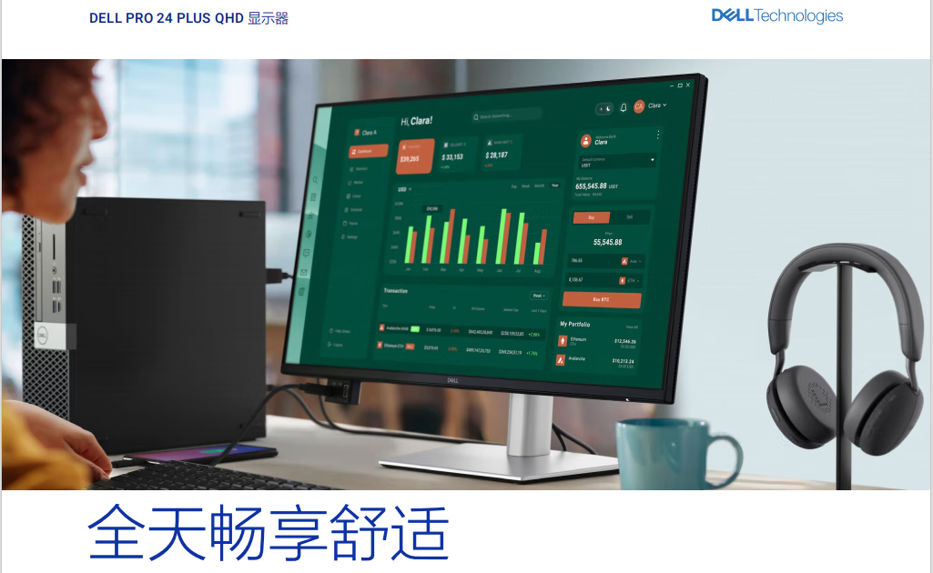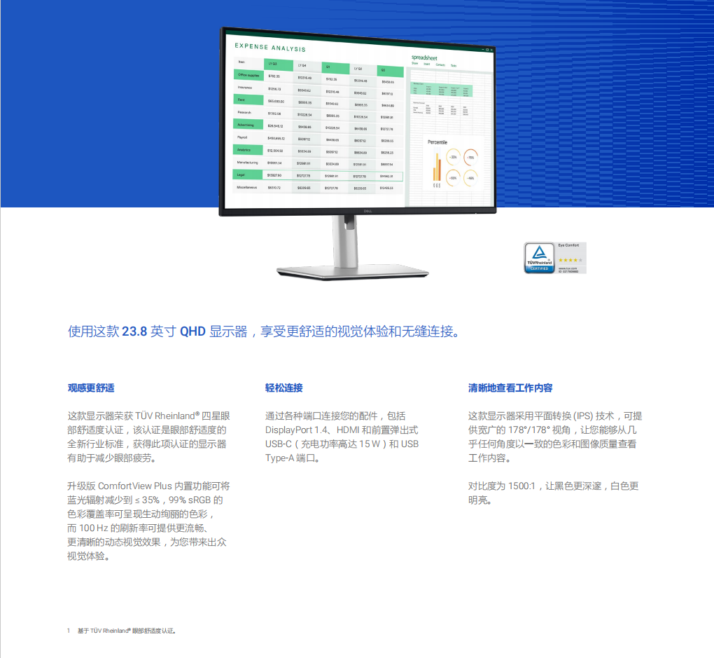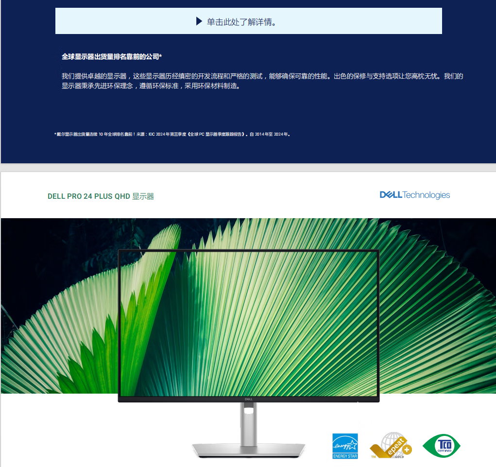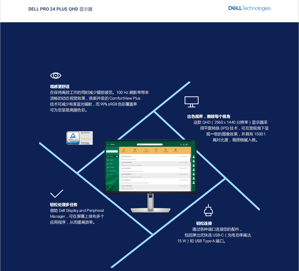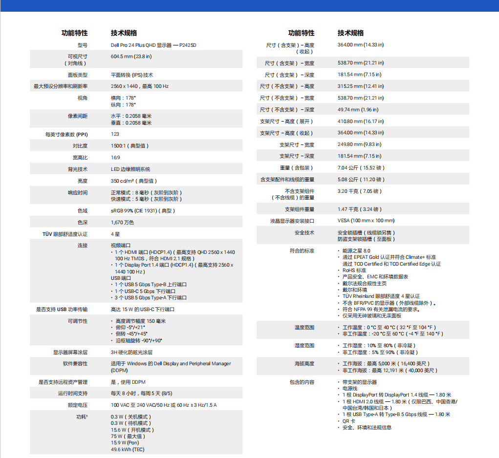 戴尔 硬件级防蓝光显示器 P2425D 23.8英寸 2K高清 1个