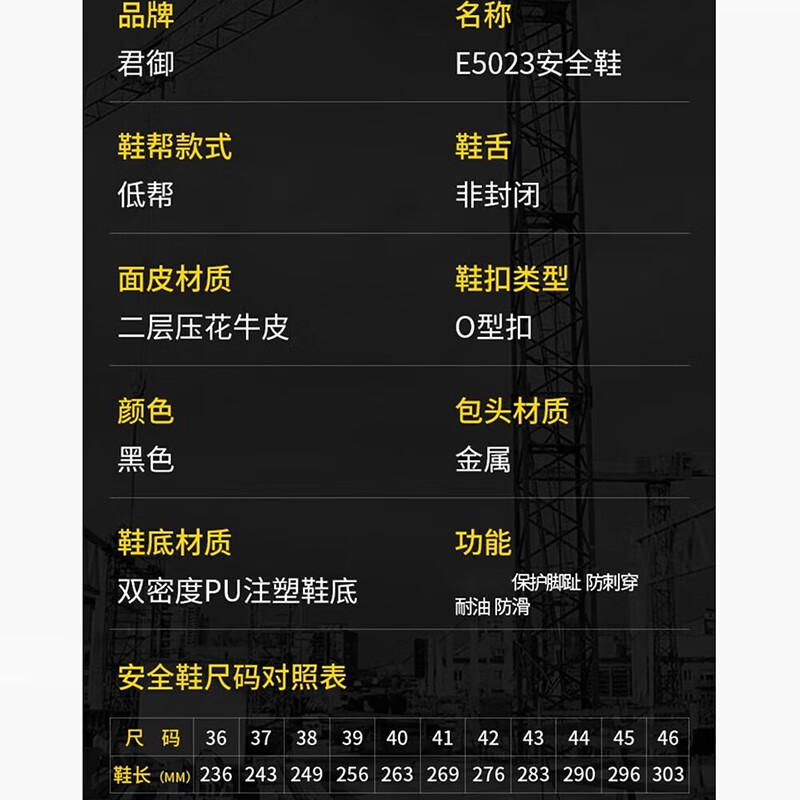 君御 防砸防刺穿防静电安全鞋 E5023 36码 1双