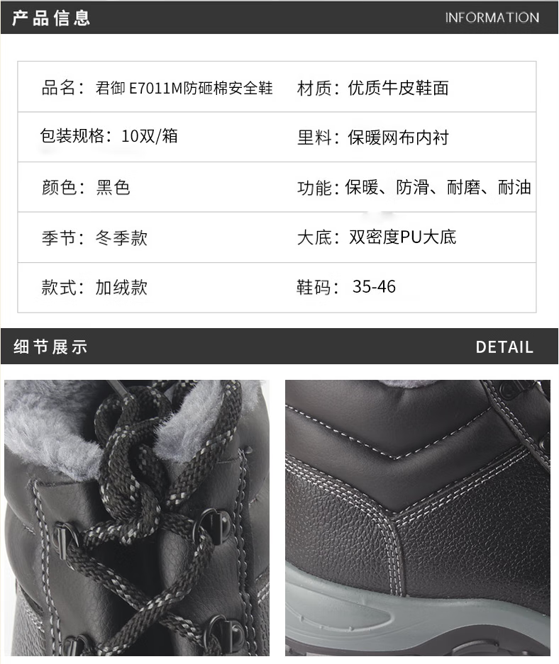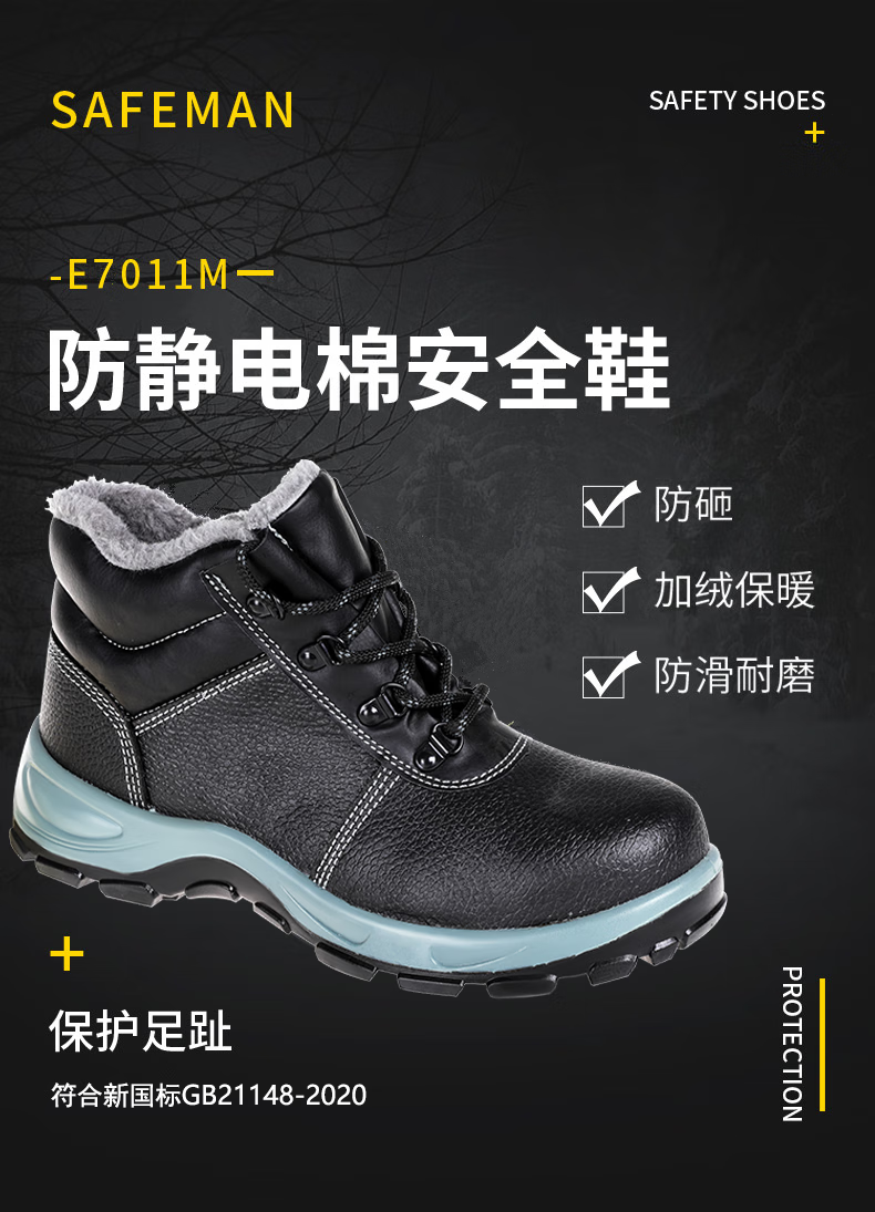 君御 防砸防静电安全鞋 E7011M 加棉中帮 38码 1双