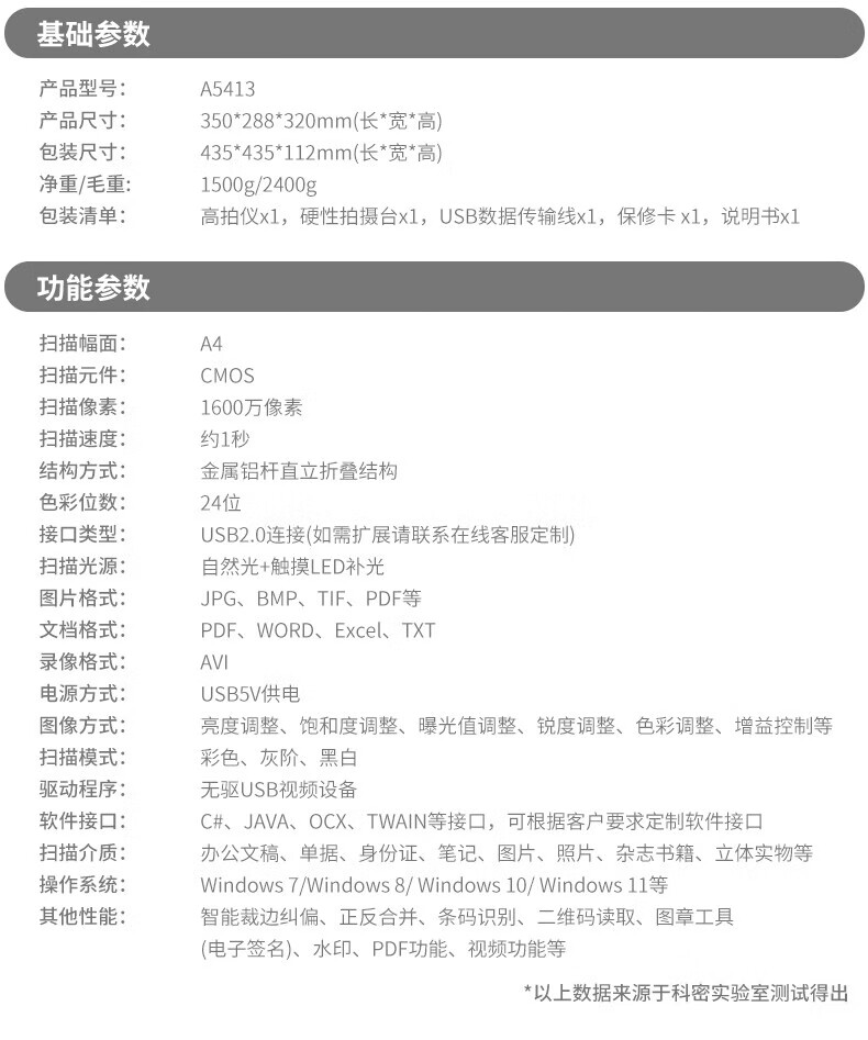 科密 智能办公高拍仪 A5413 1300万像素 A4幅面 1台