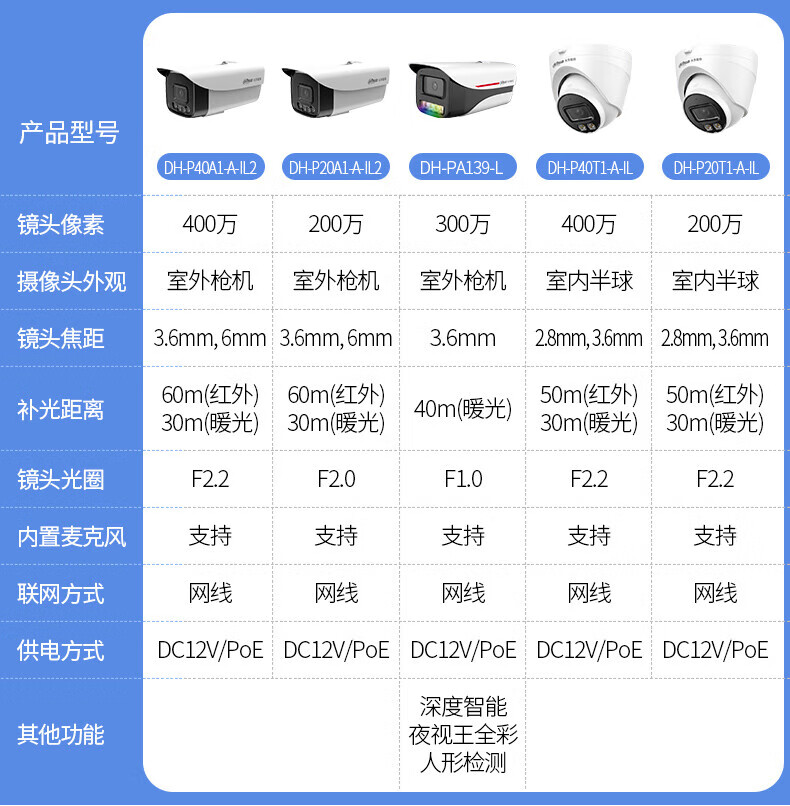 大华 200万高清全彩夜视摄像头 DH-P20A1-A-IL2 3.6mm 1个