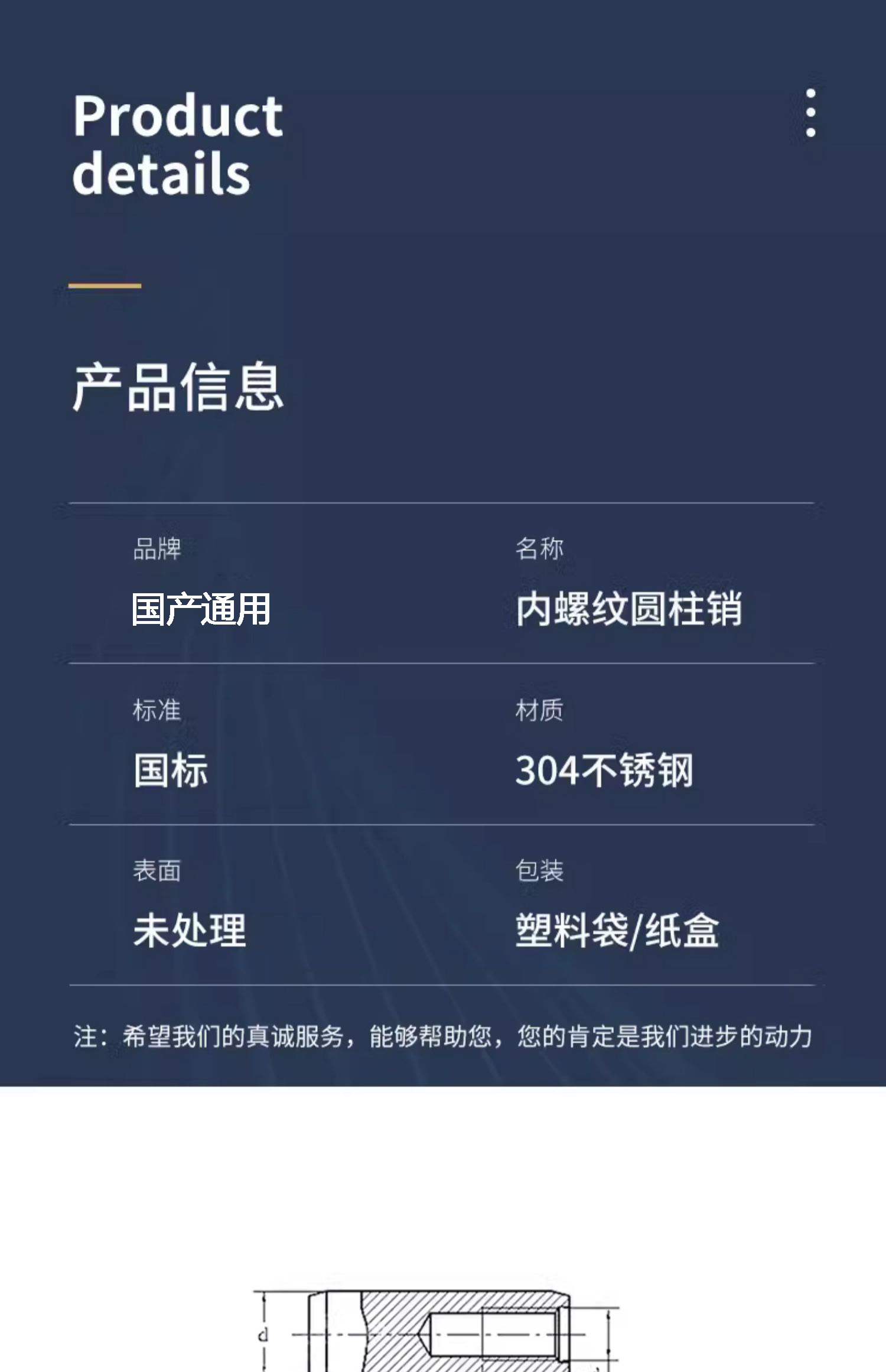 国产通用 内螺纹圆柱销 GB120 304不锈钢(本色) φ8×18×M5 1个