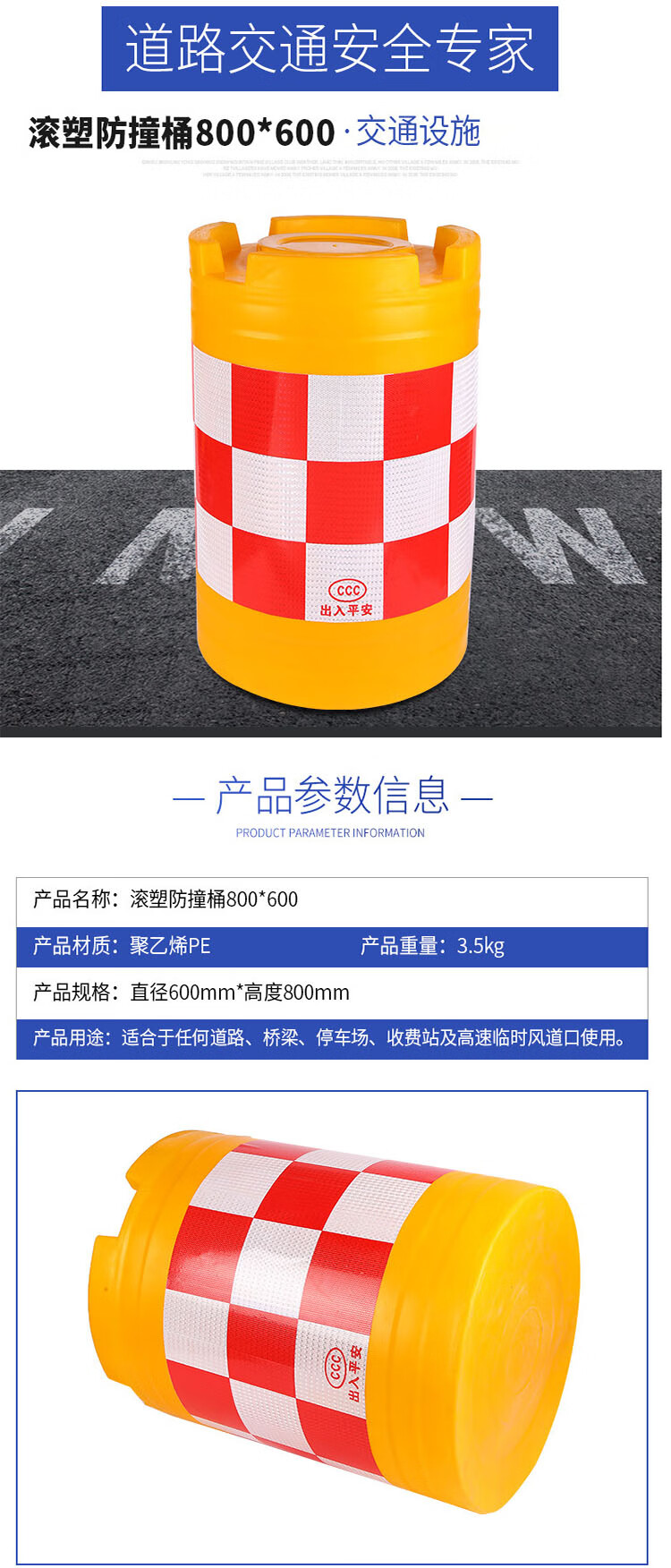 海斯迪克 水马隔离墩 HK-219 PE 吹塑防撞桶800*600mm 黄色+红白 1个
