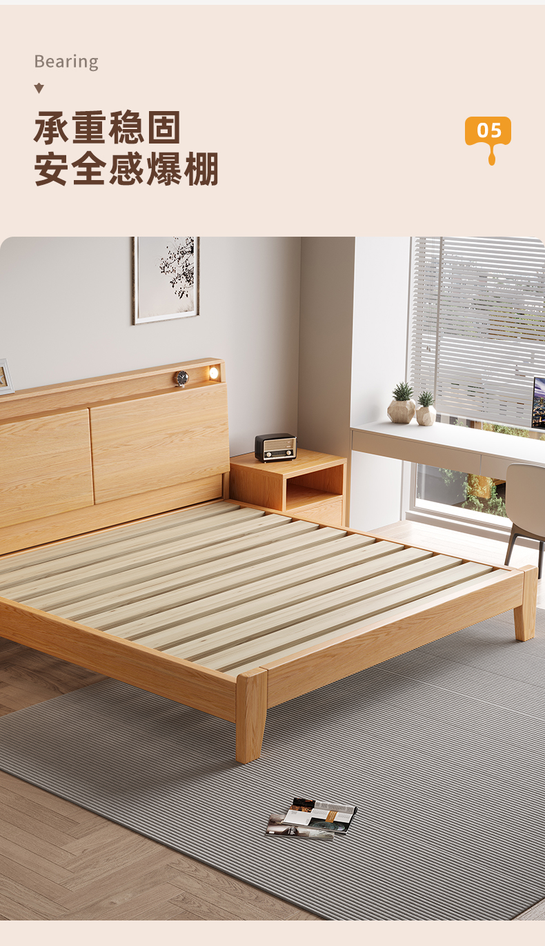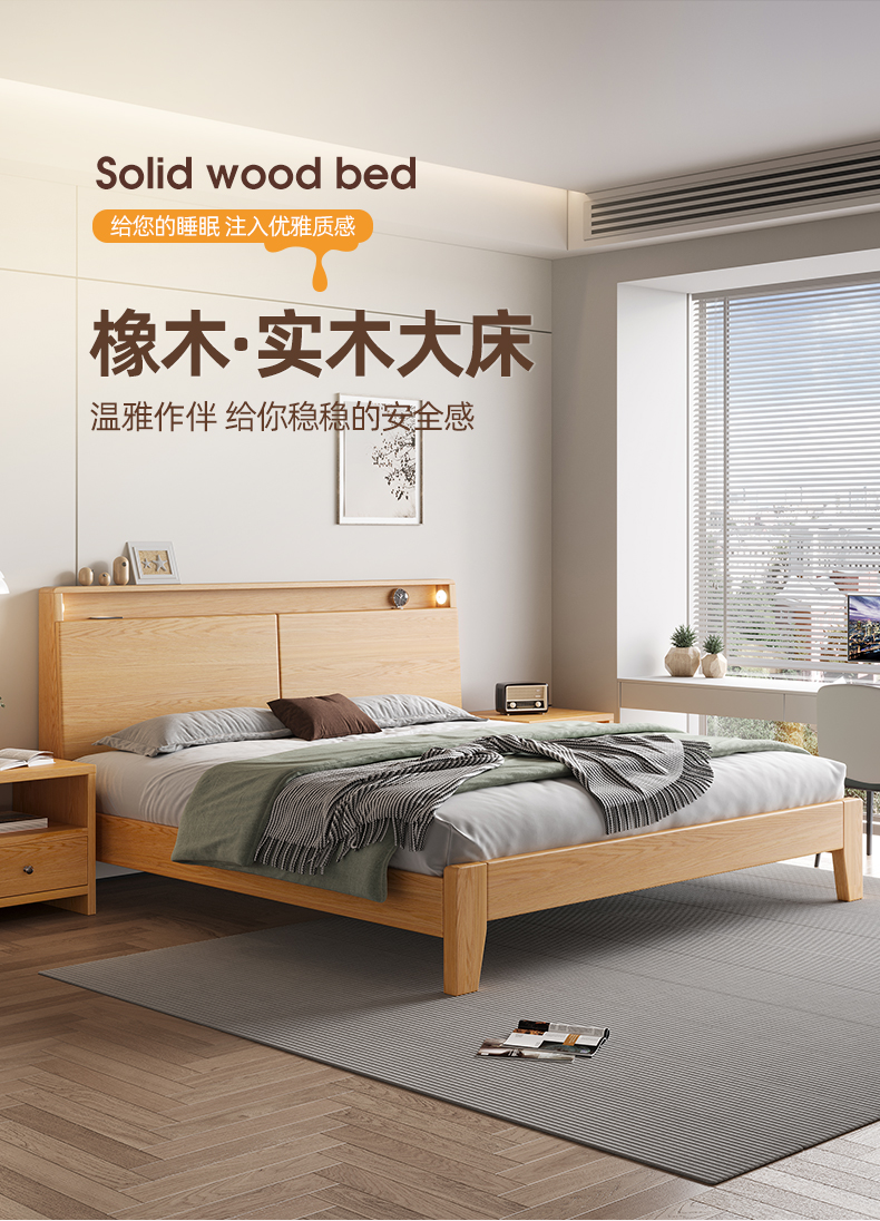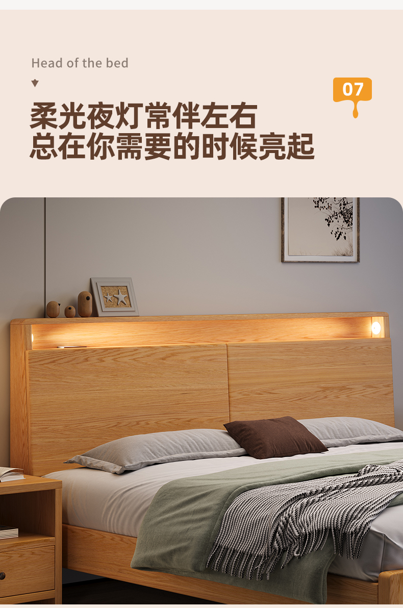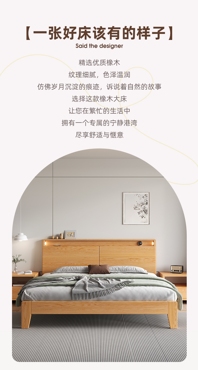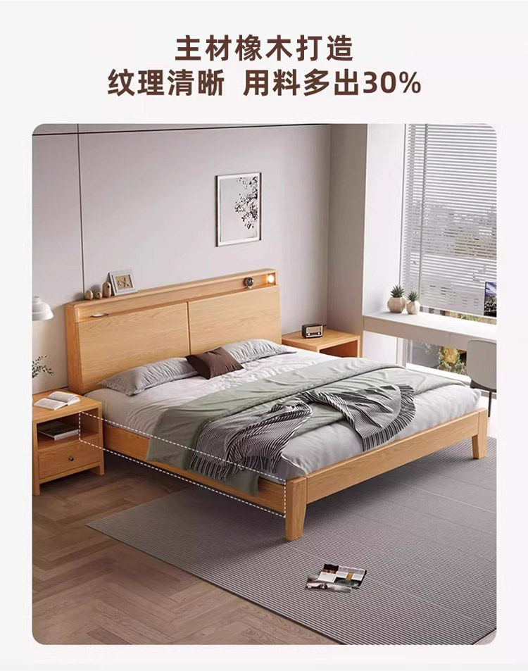 梦安客 实木床 LED灯橡木床+20cm弹簧床垫 1200mm*2000mm 1套