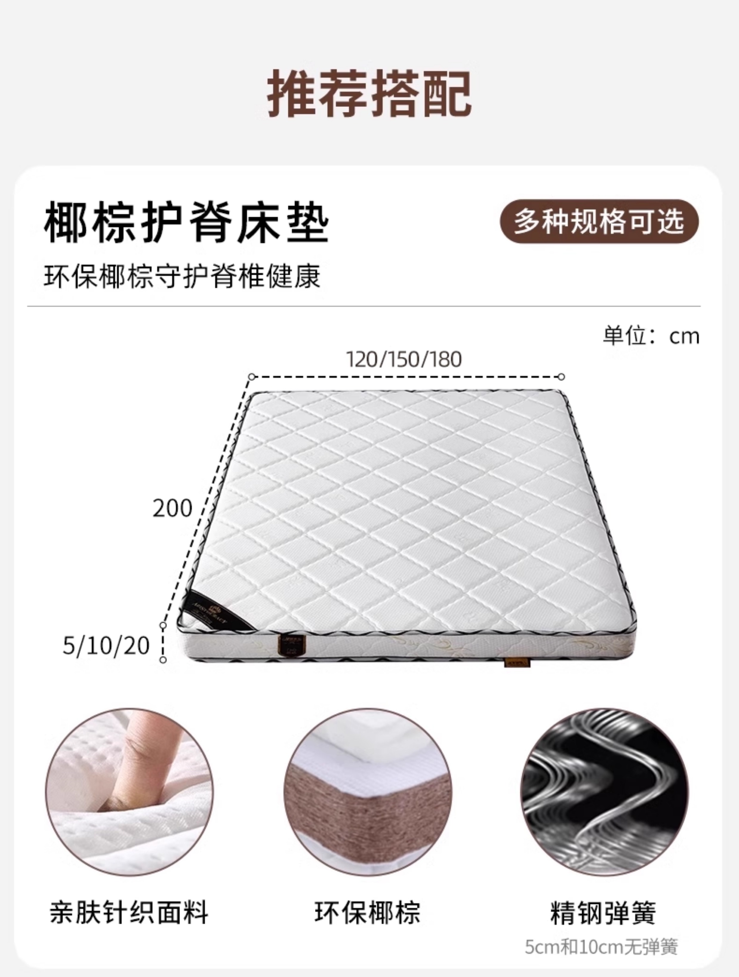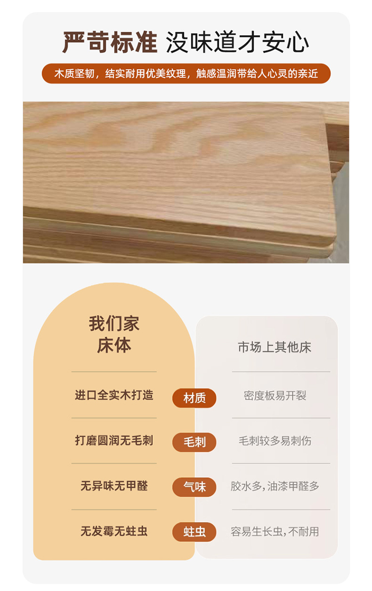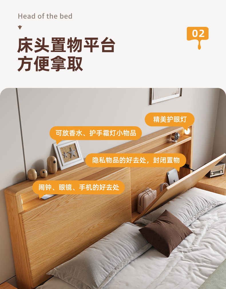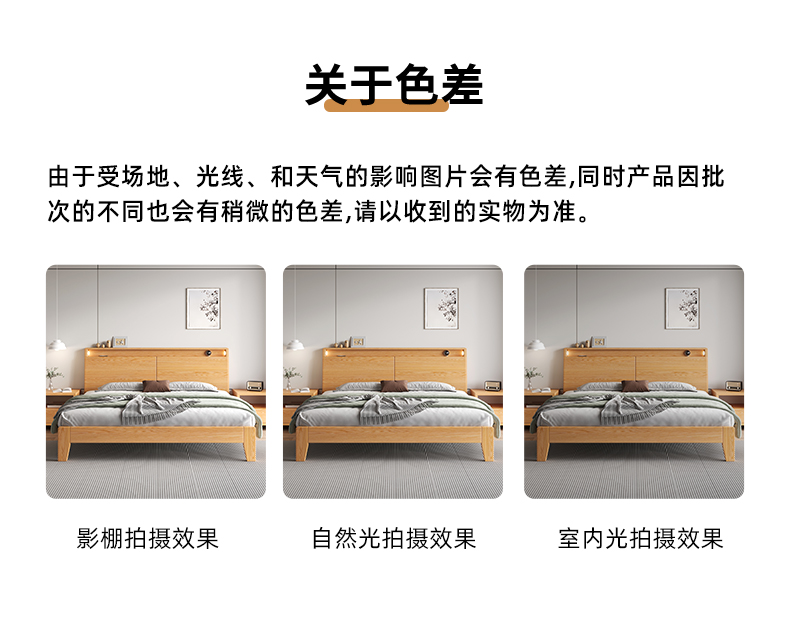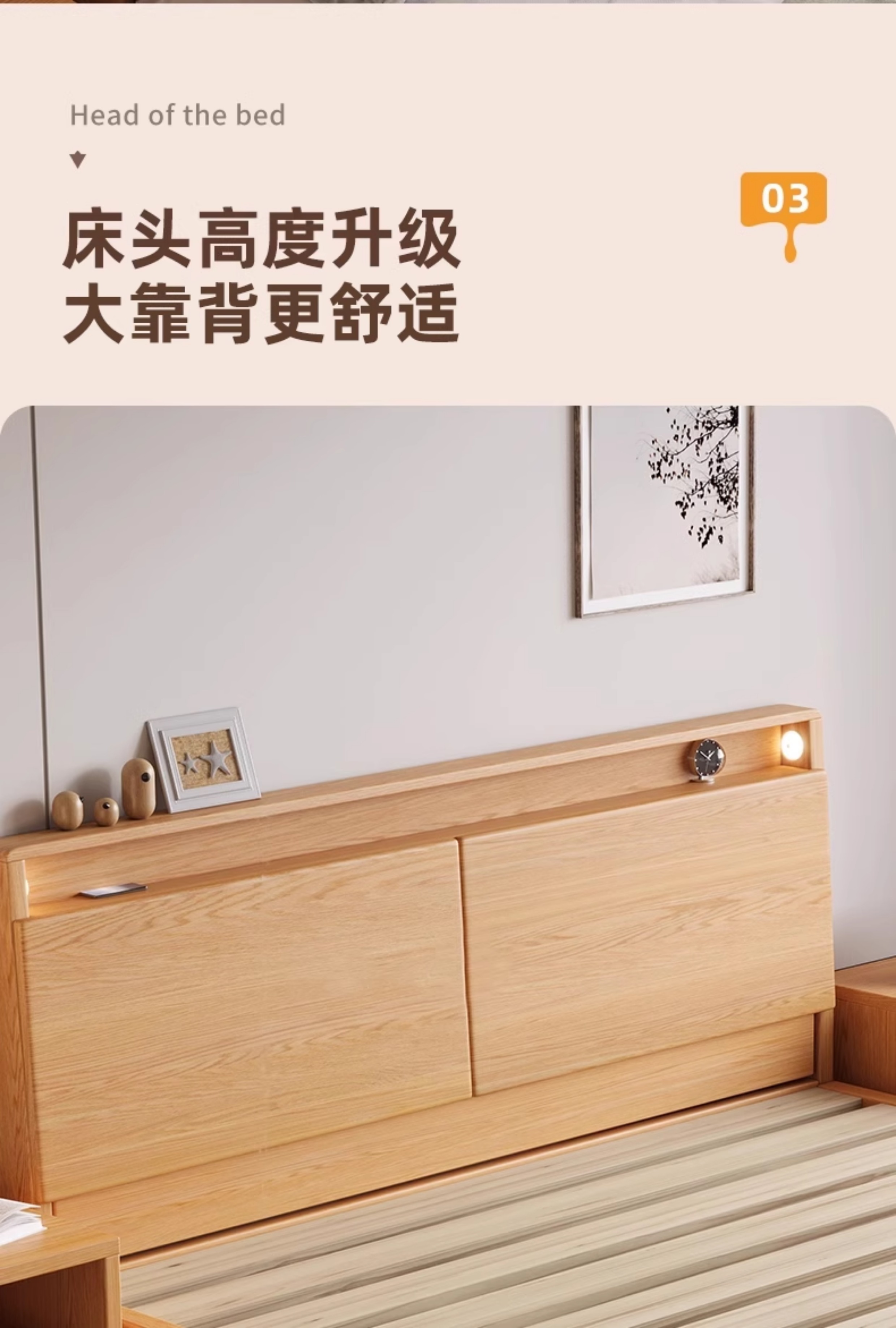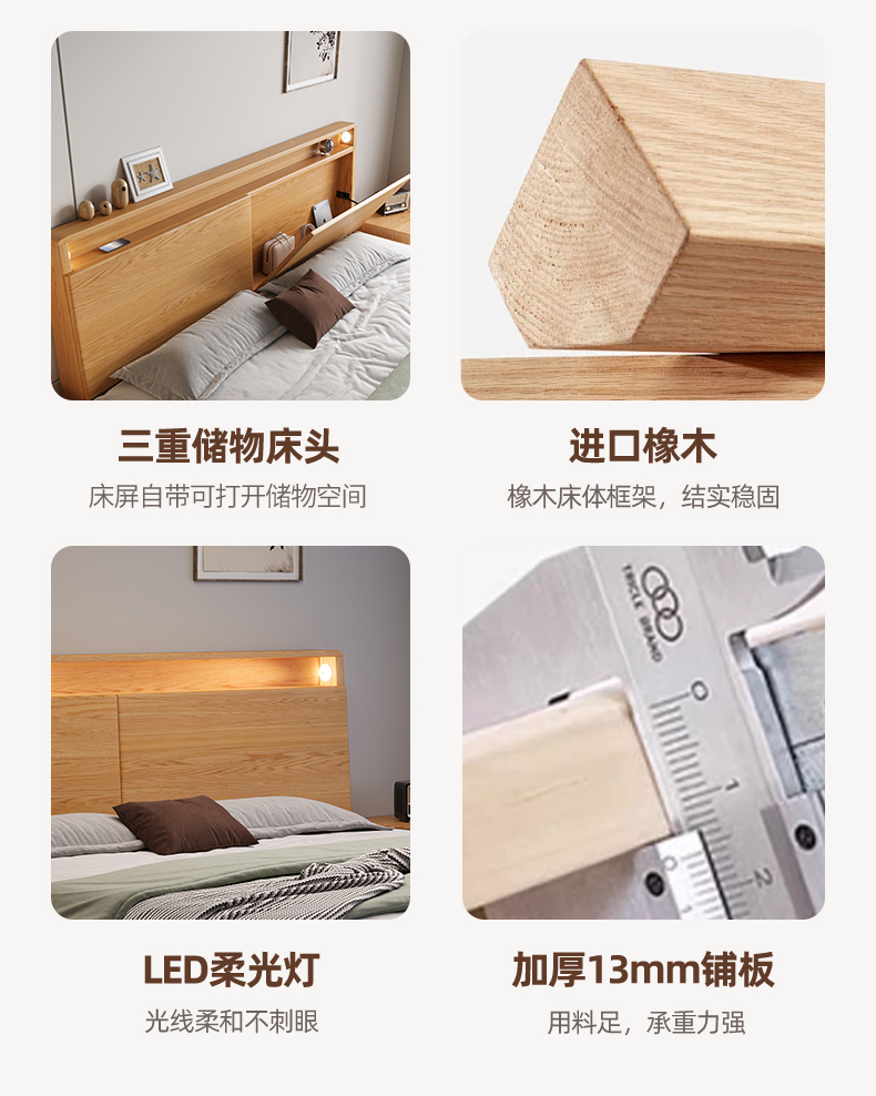 梦安客 实木床 LED灯橡木床+20cm弹簧床垫 1200mm*2000mm 1套