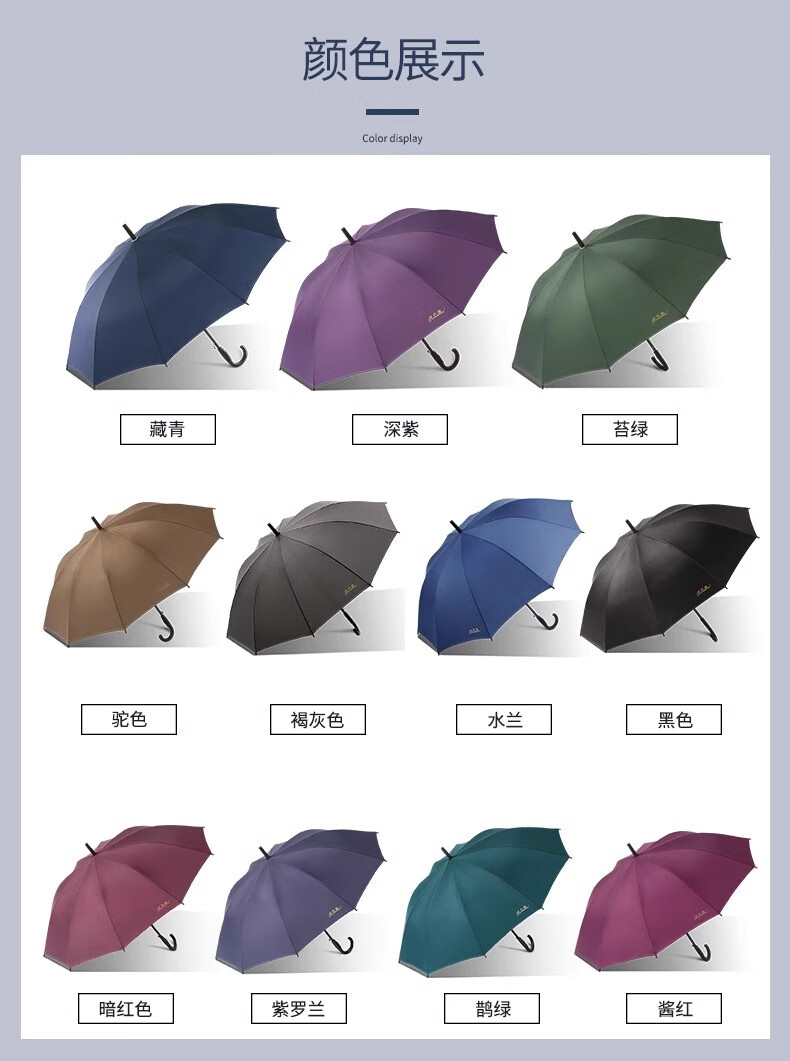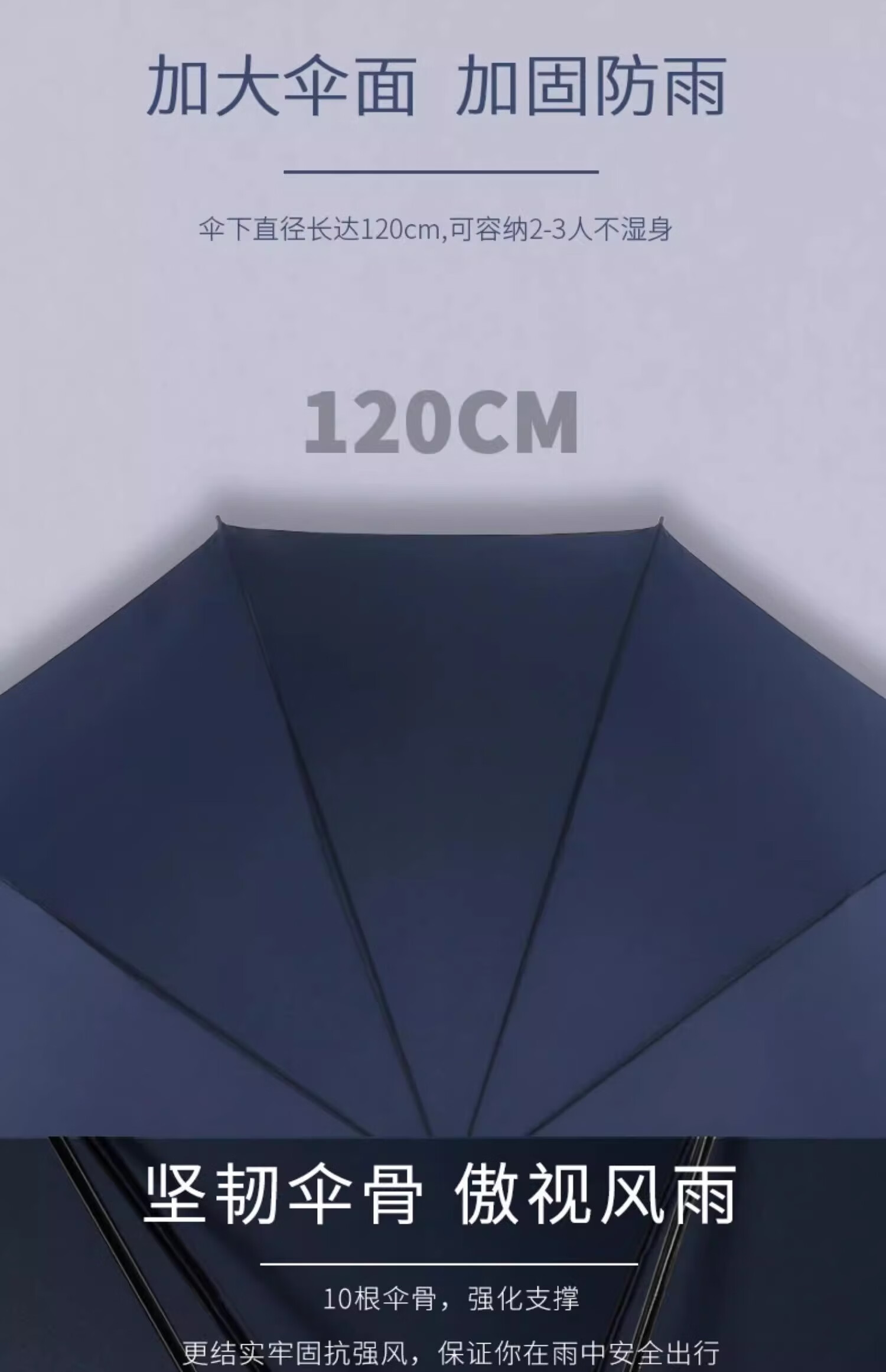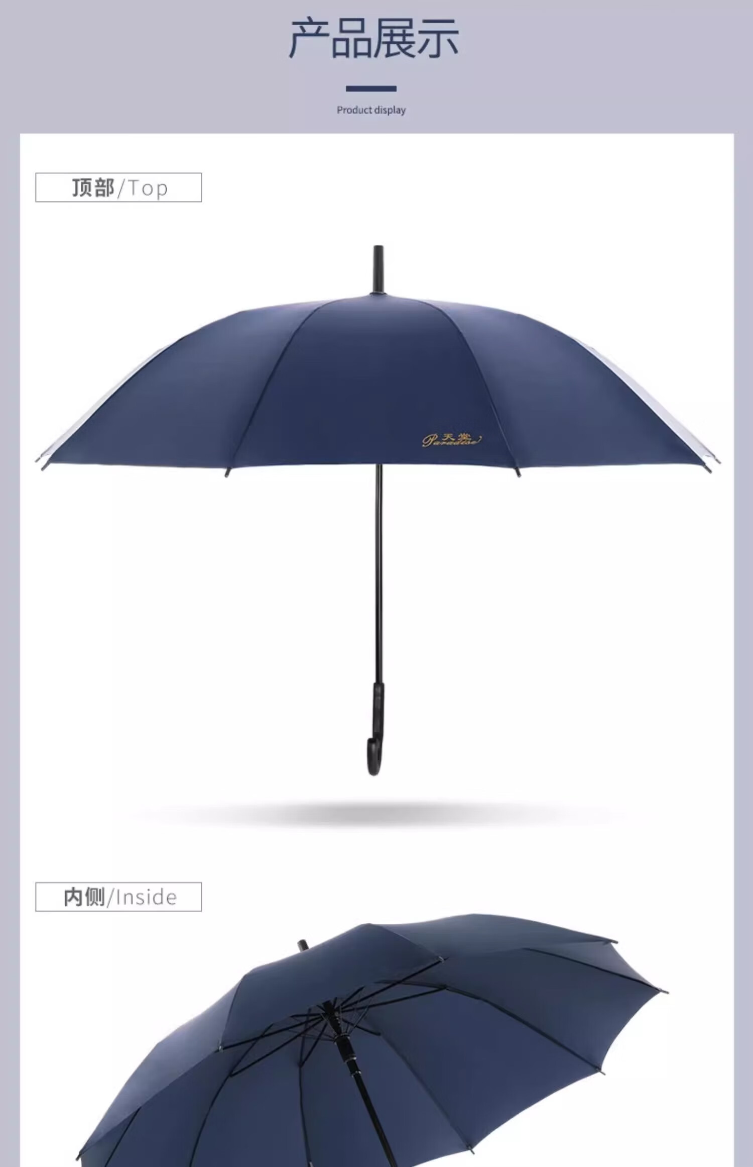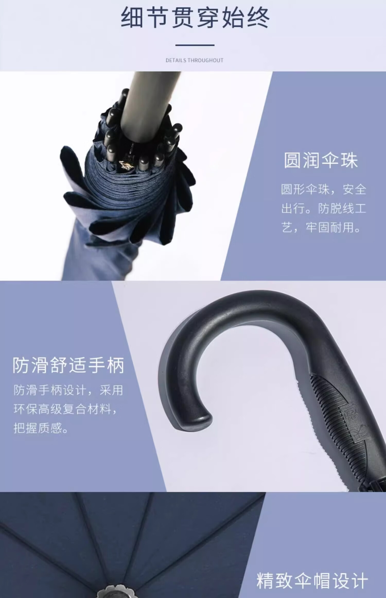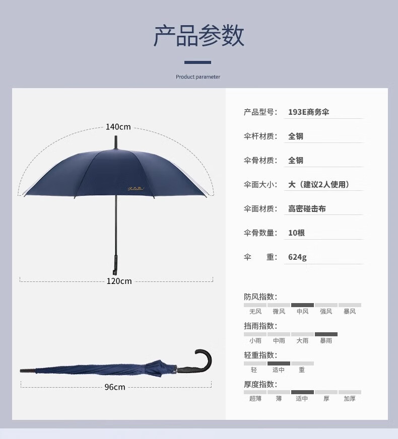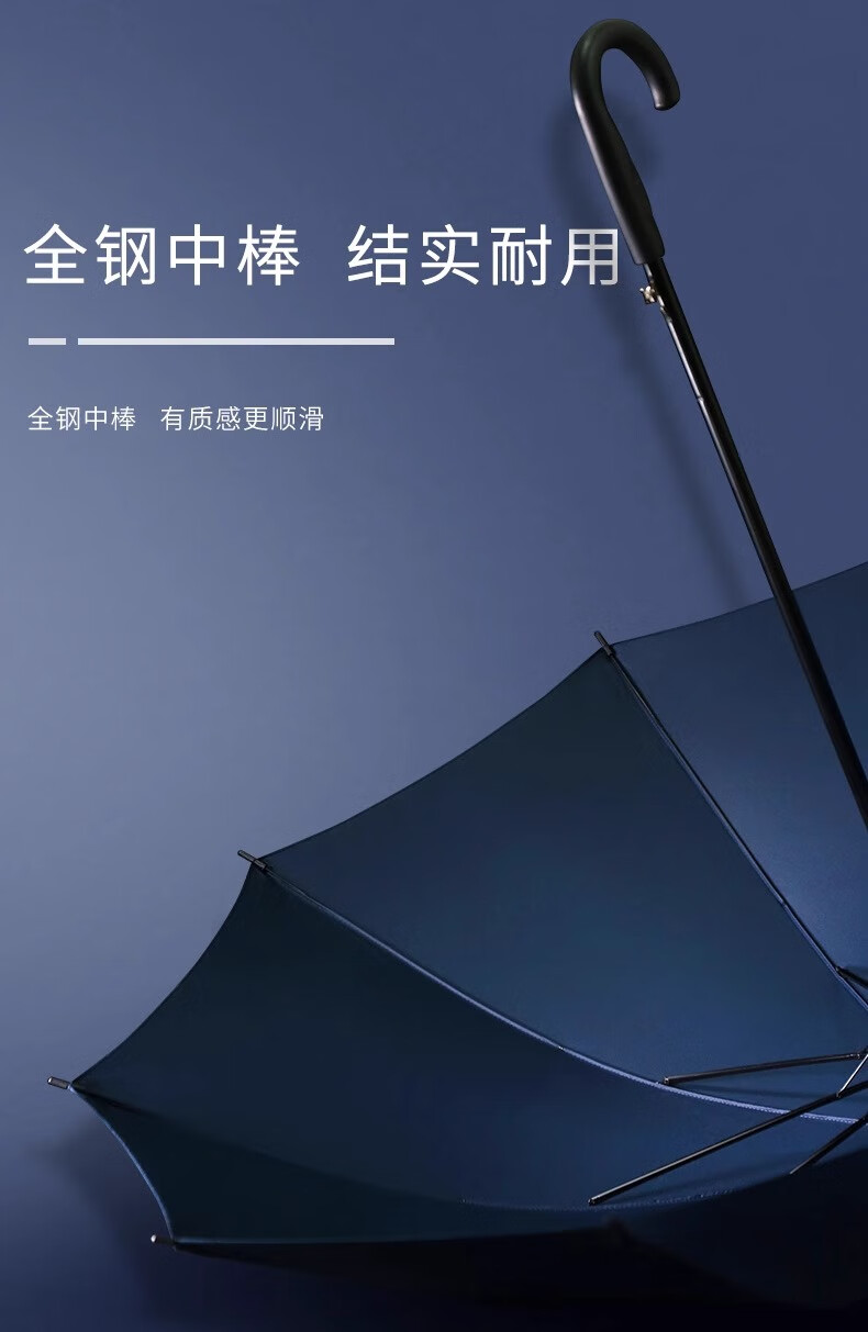 天堂 半自动长柄雨伞 193E 全钢+高密碰击布 超大号 藏青色 10骨 1把