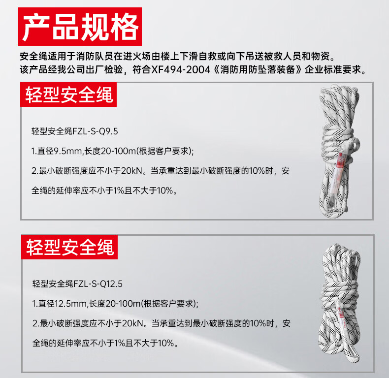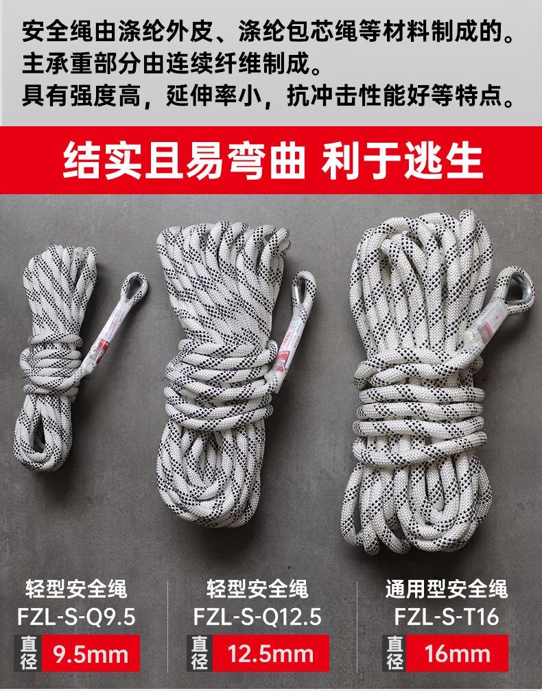 亿茹 消防轻型安全绳 长20m φ9.5mm 1条