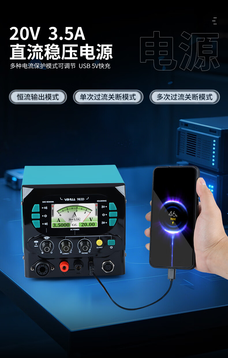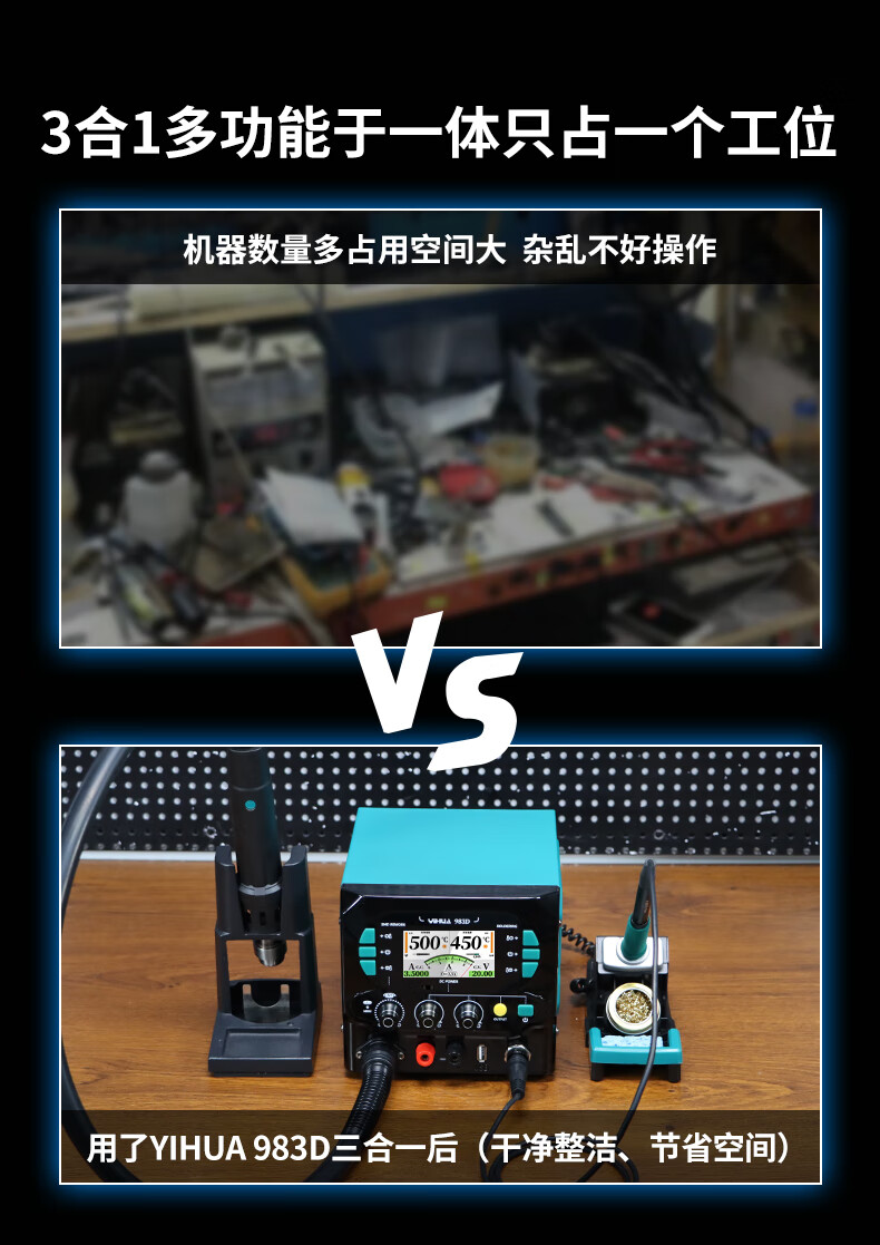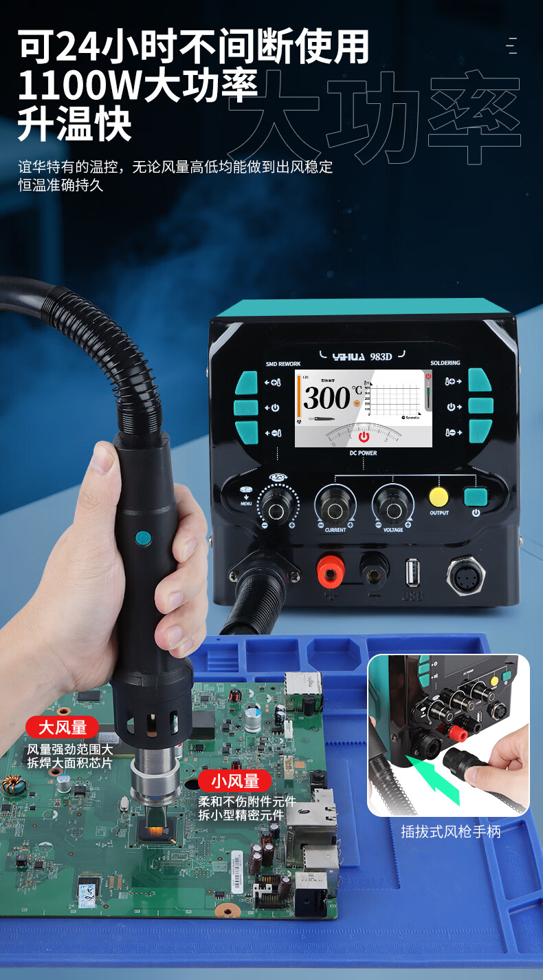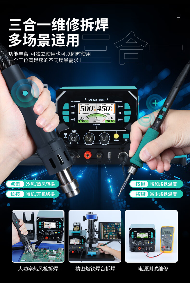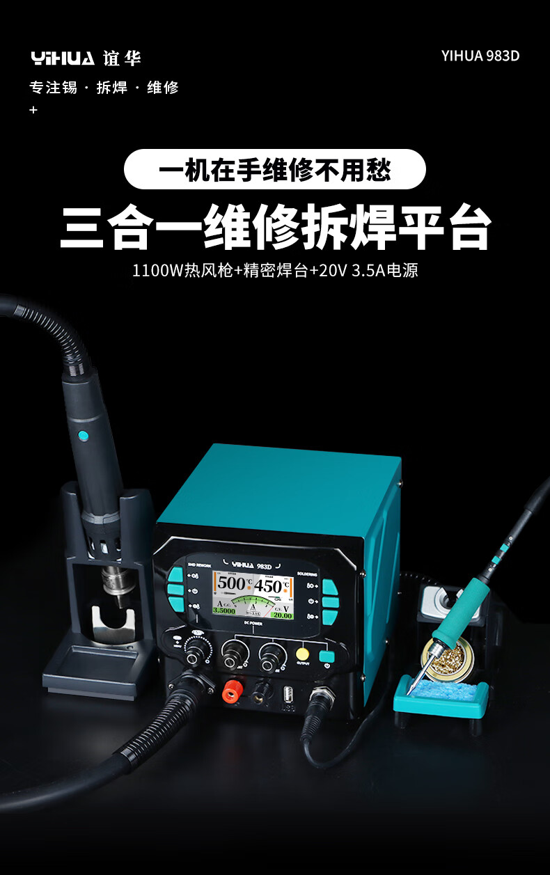 谊华 三合一热风拆焊台 983D 3.5A 20V 1100W热风枪 1台