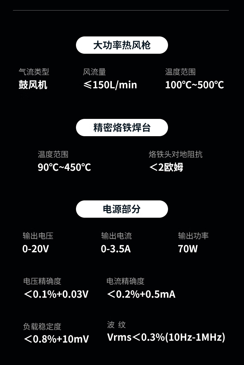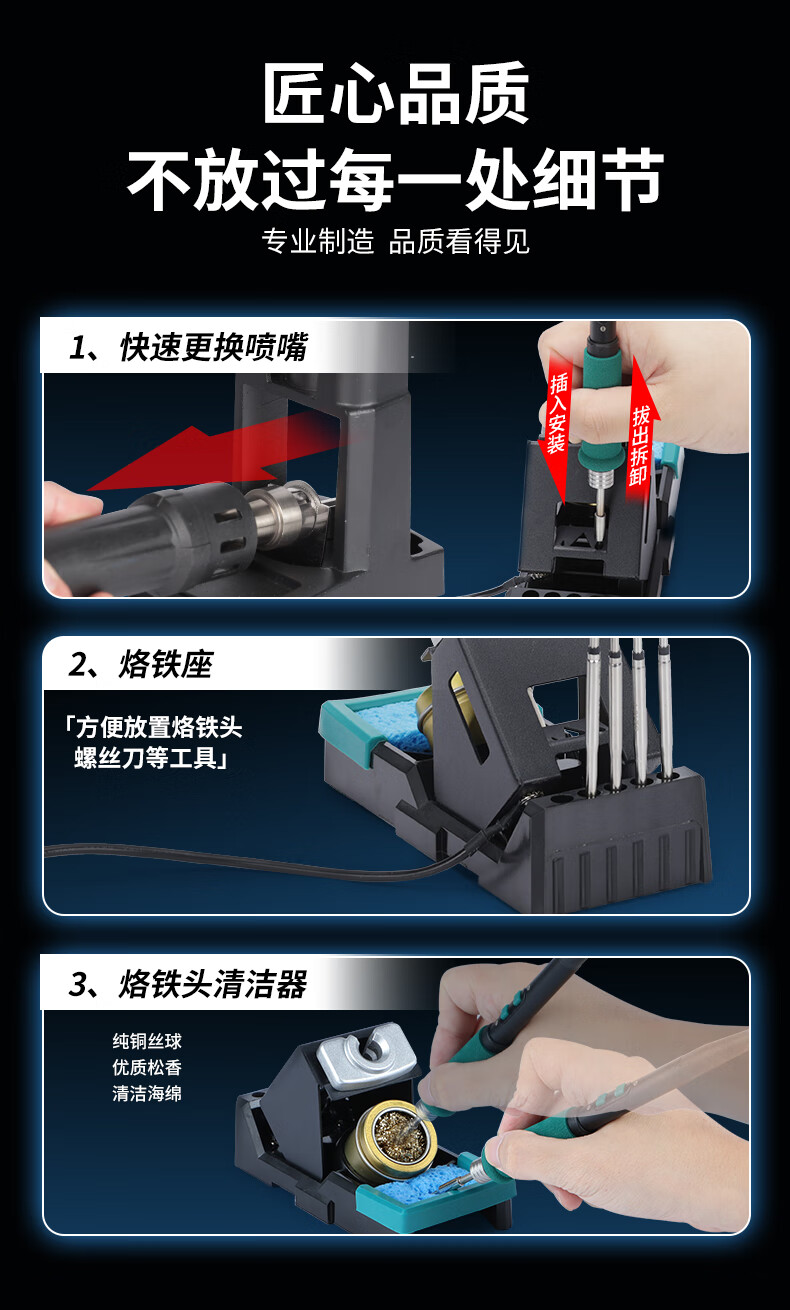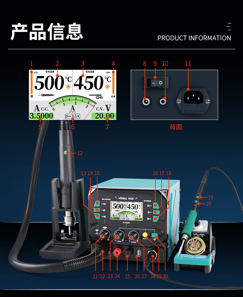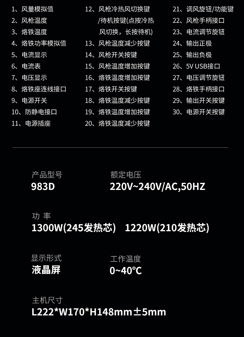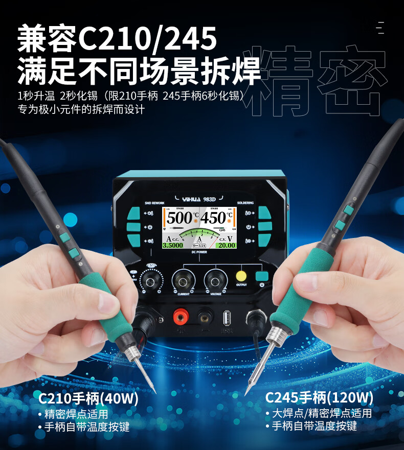 谊华 三合一热风拆焊台 983D 3.5A 20V 1100W热风枪 1台