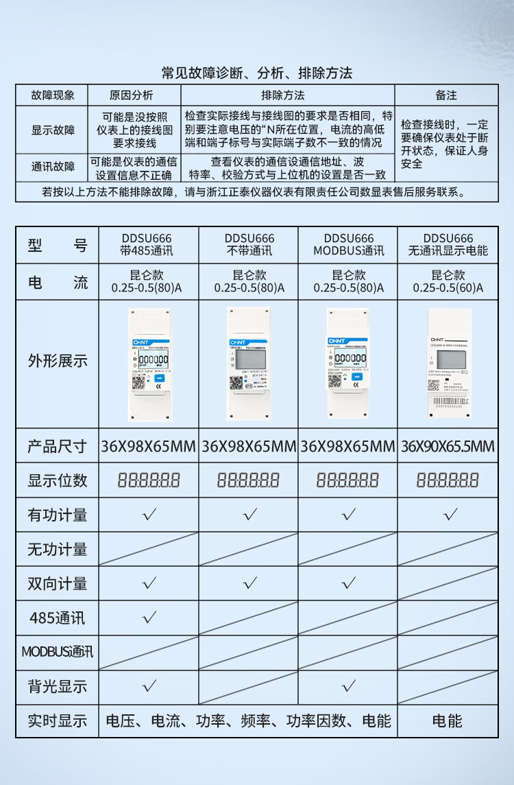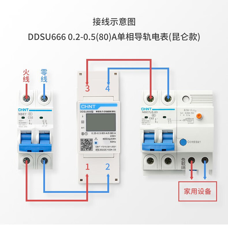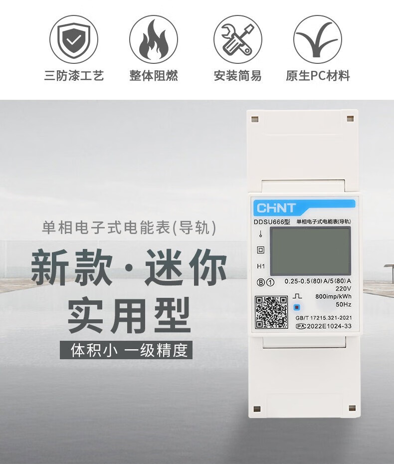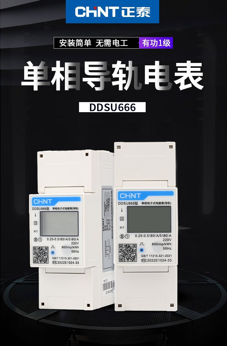 正泰 DDSU666型导轨电表 2P 220V 0.25-0.5(60)A 1个