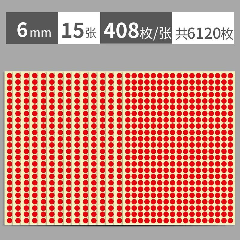 海斯迪克 6mm彩色圆形圆点不干胶标签 6mm红色 15张 1包