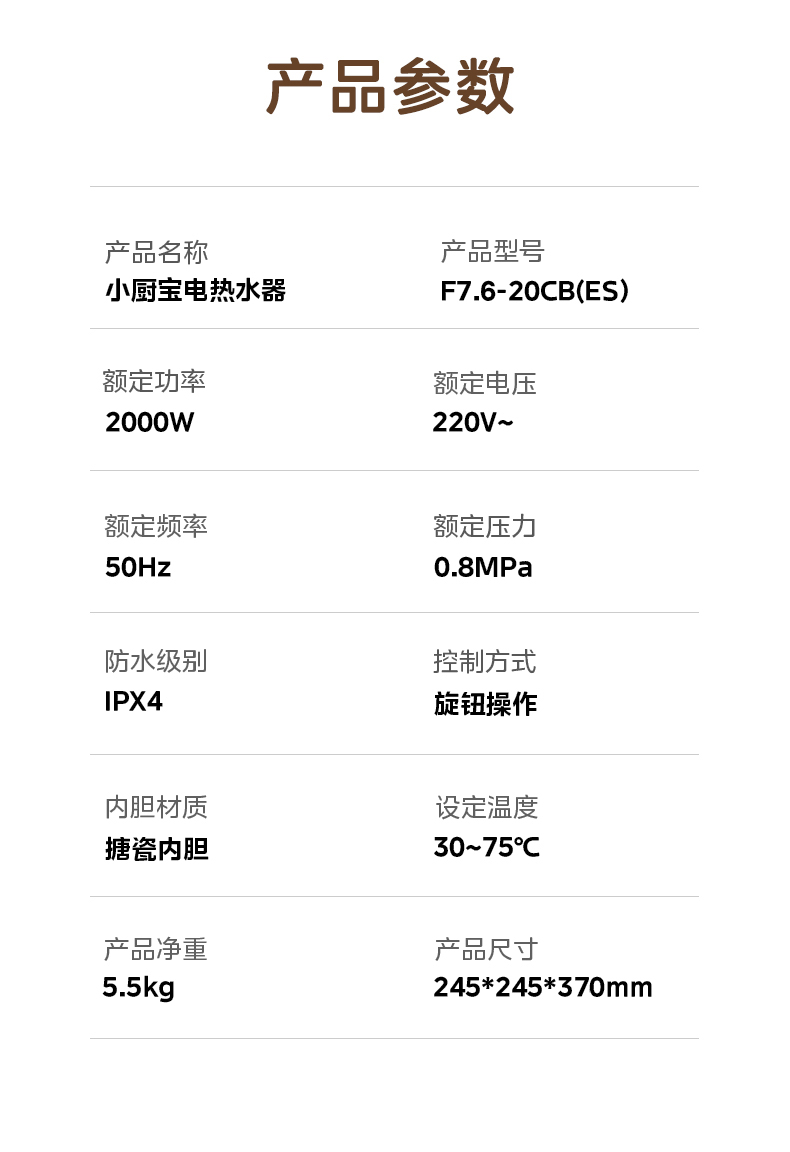 美的 小厨宝电热水器 20CB5 7.6L 1台