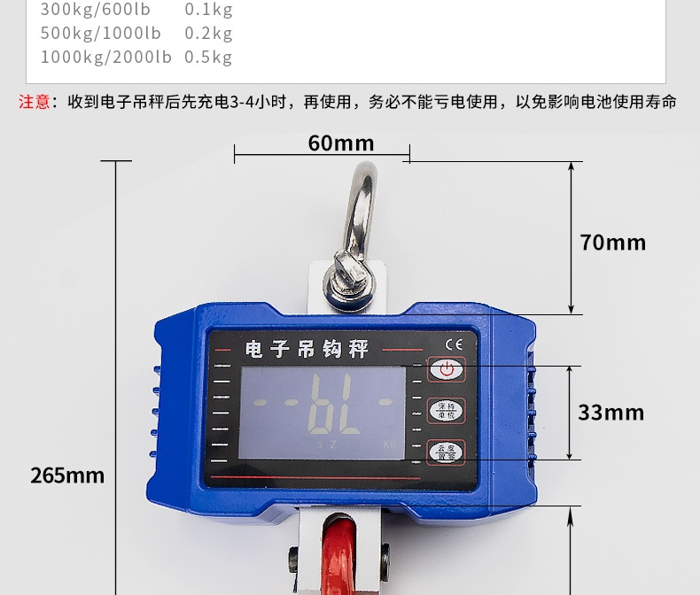 海斯迪克 遥控电子吊秤电子秤 gnjz-597 1000kg/0.5kg 1个