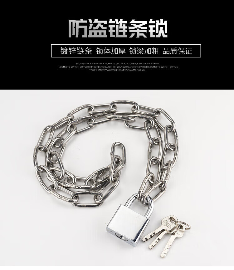 冰禹 防盗链条锁 BY-814 碳钢(镀锌) M8长1米+40mm电镀锁 1个
