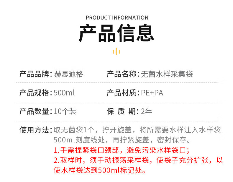 赫思迪格 无菌水样袋 HGJ-1501 500ml 10个 1包