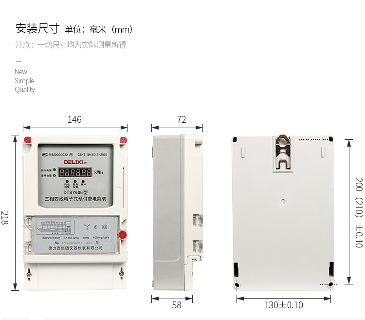 德力西电气 DTSY606系列领航者三相电能表 DTSY606MQ16M4HL 三相四线 220/380V 1.5(6)A 1台