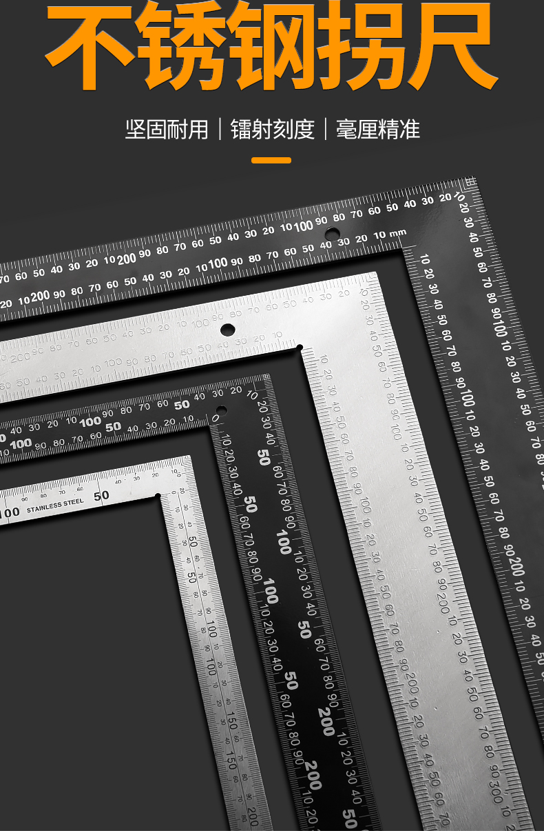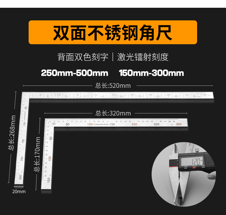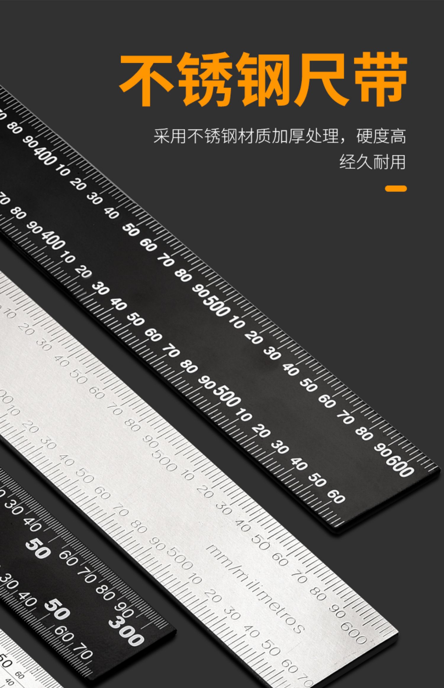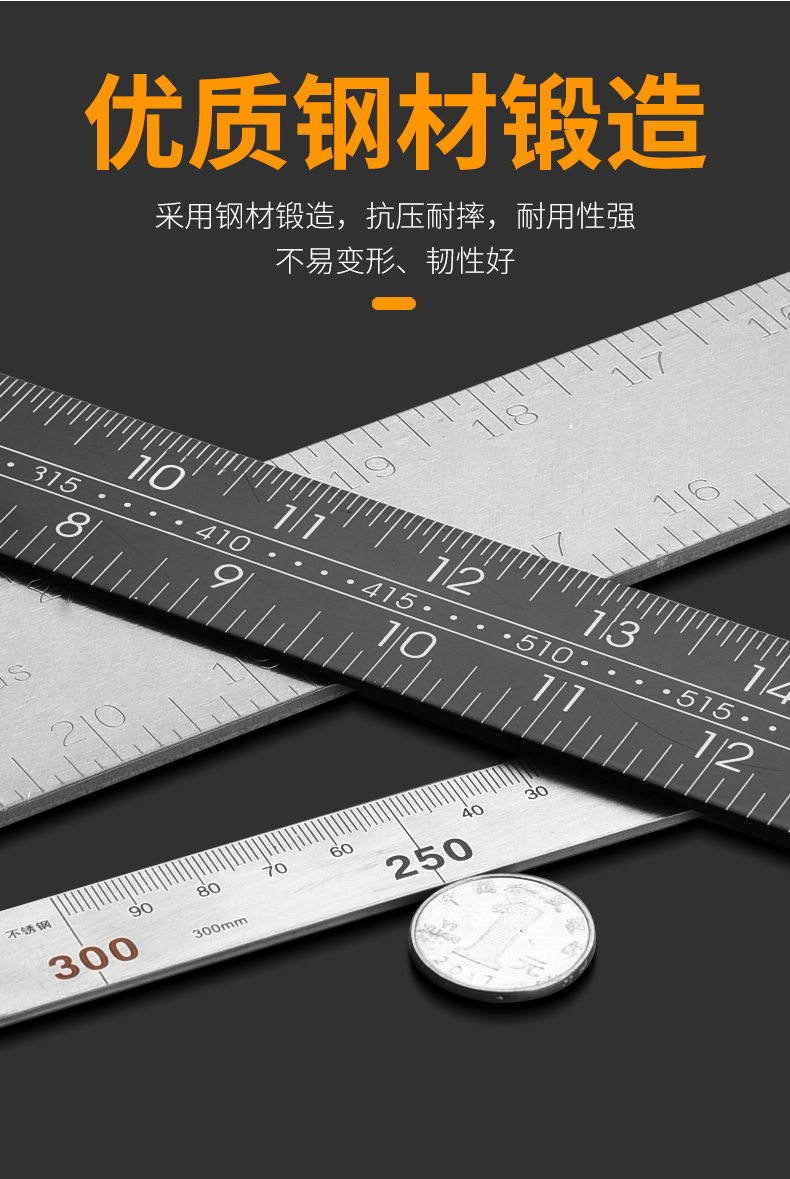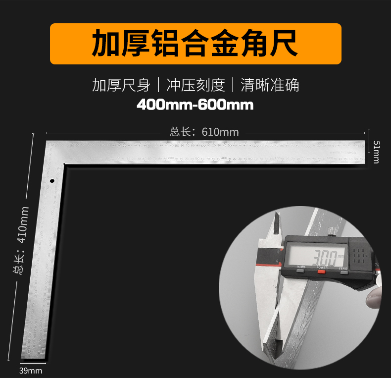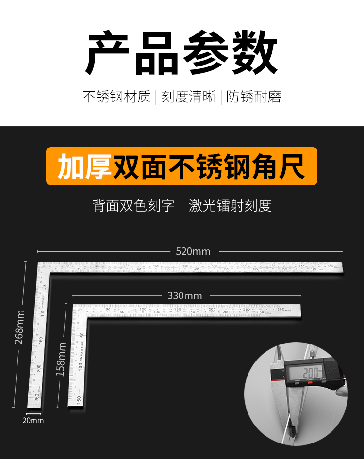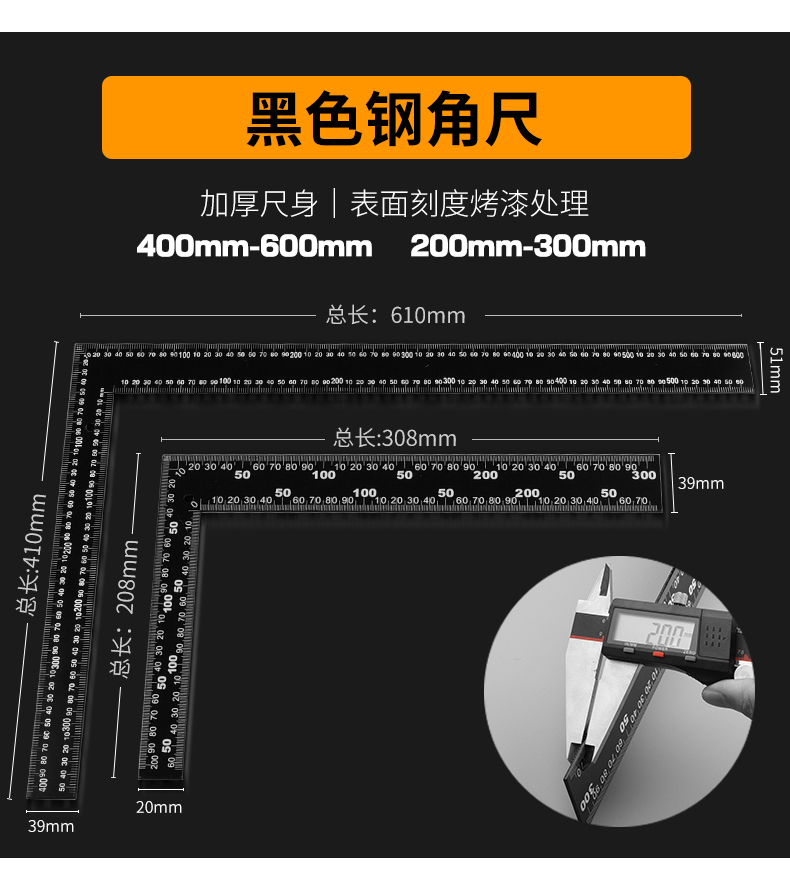 保联 90度角尺 不锈钢 200×300mm 厚2mm 黑面 1把