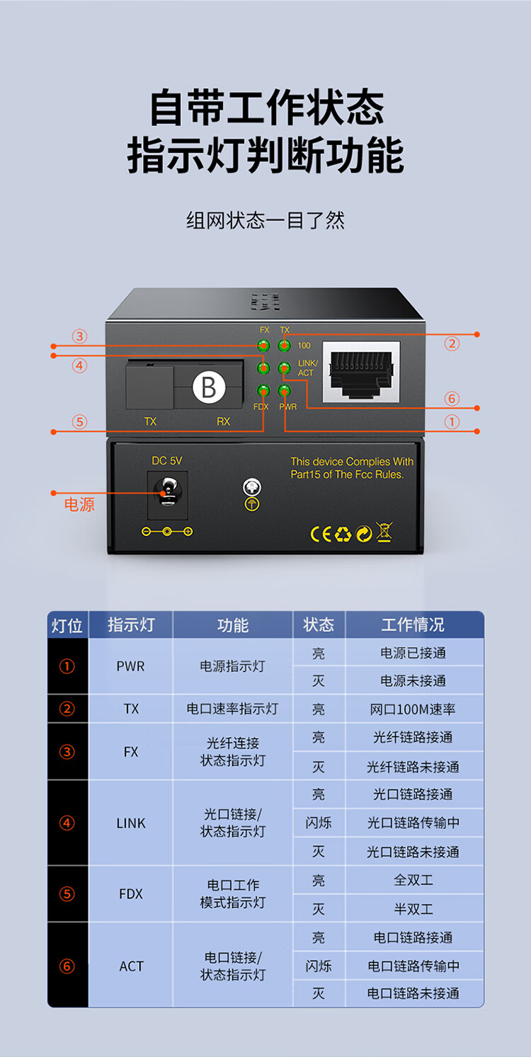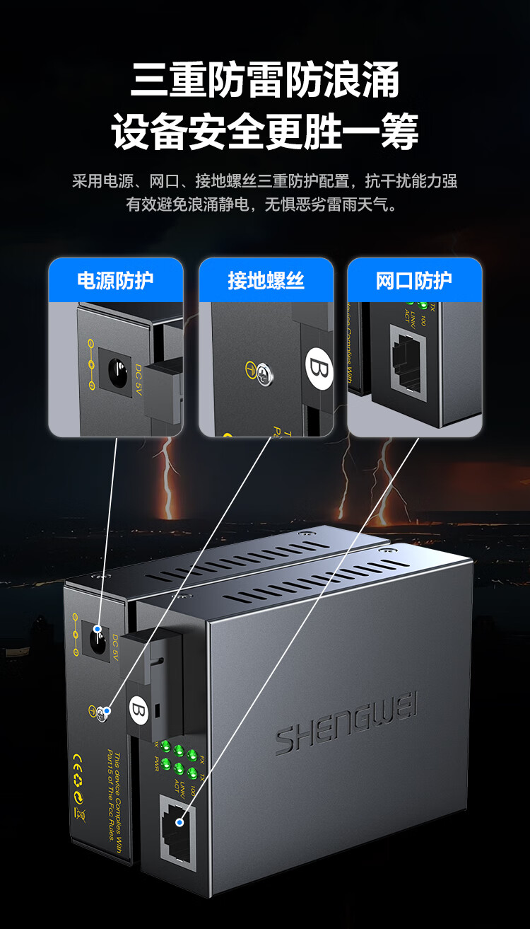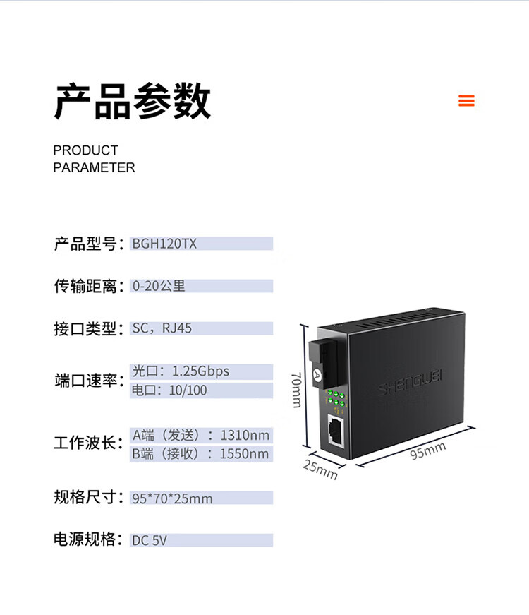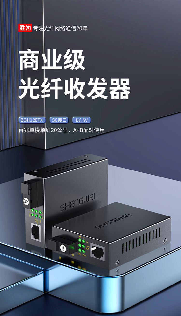 胜为 百兆单模单纤光纤收发器 BGH120TX 传输距离≤3KM 1对