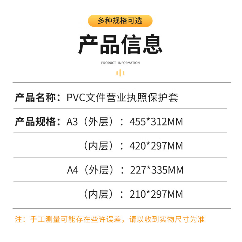 赫思迪格 pvc文件营业执照保护套 JG-1022 A3正本(横)+A4副本(竖) 2个 1包