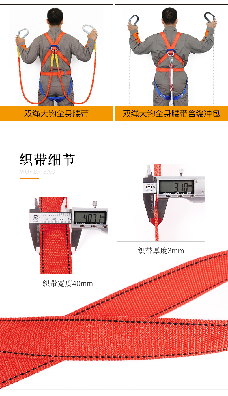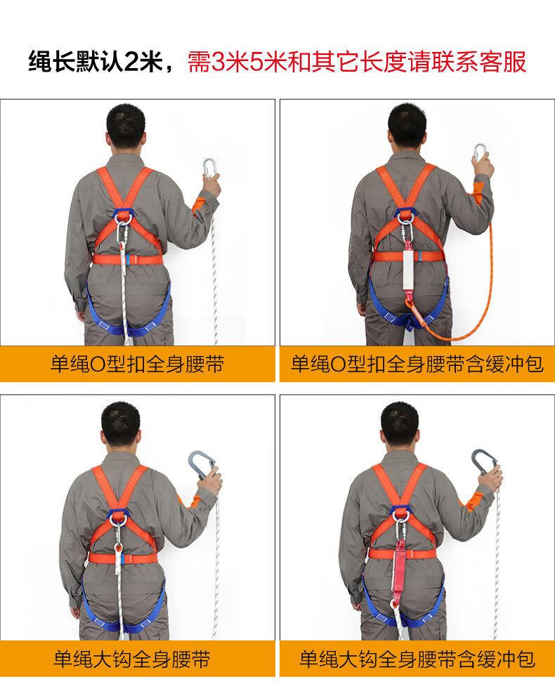 援邦 五点式安全带 YB-BKAQD-O-1 2米双绳带O型扣 红蓝色 1套