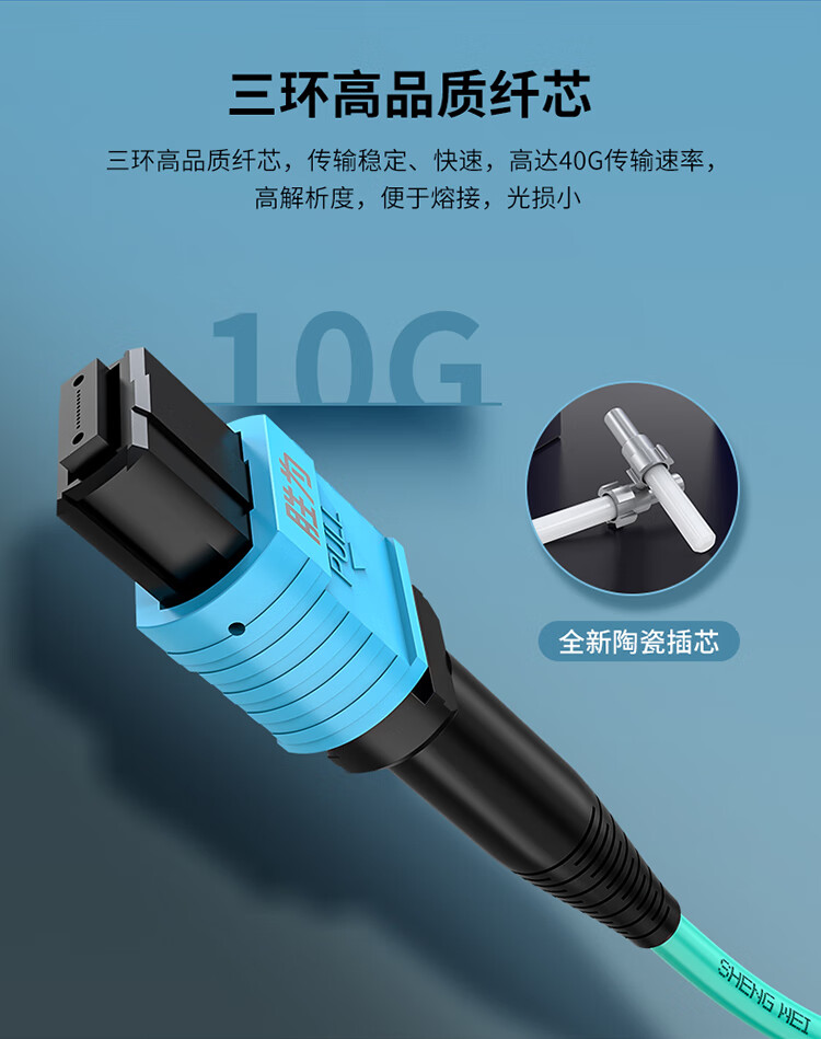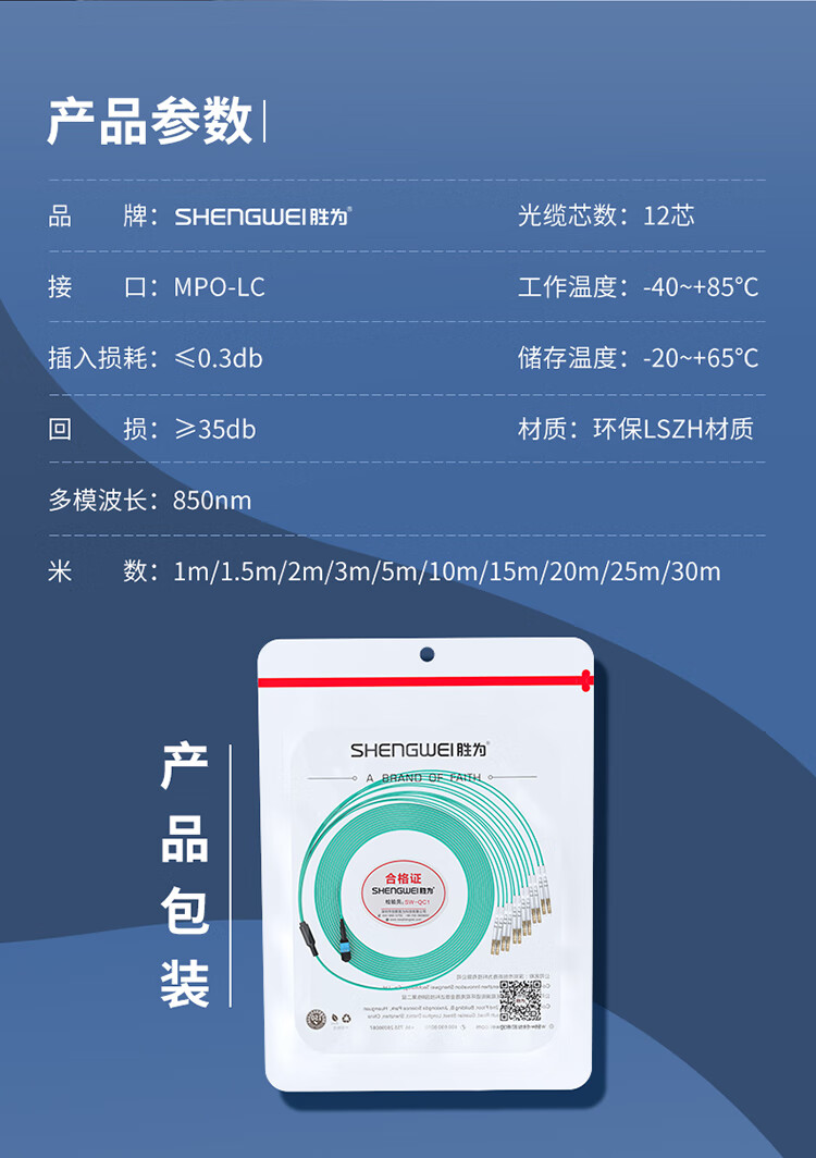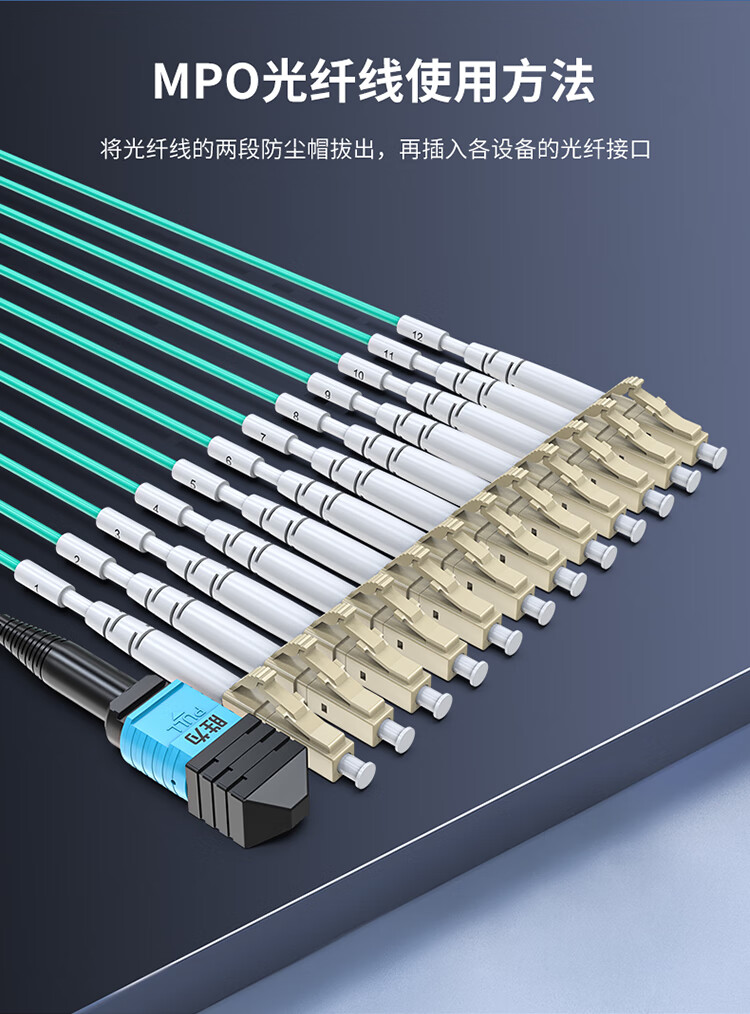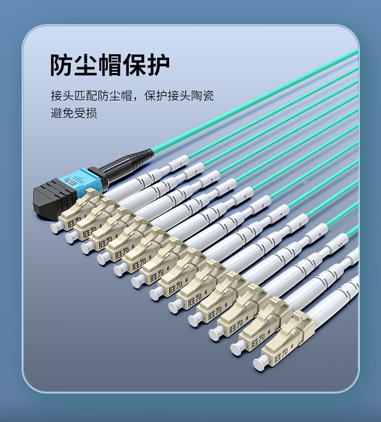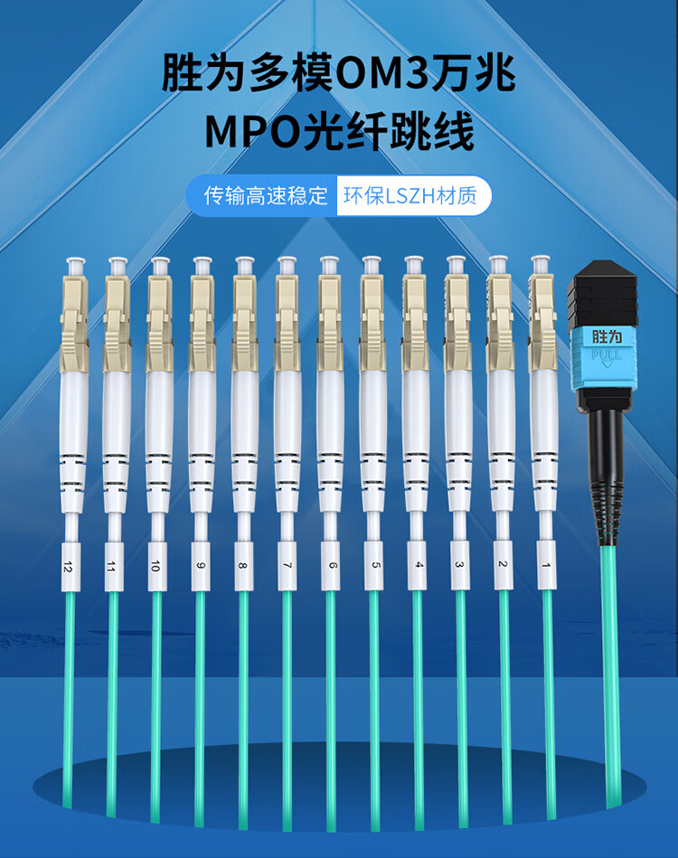 胜为 MPO-LC光纤跳线 BMPL-1202 12芯 OM3 湖水蓝 2m 1条