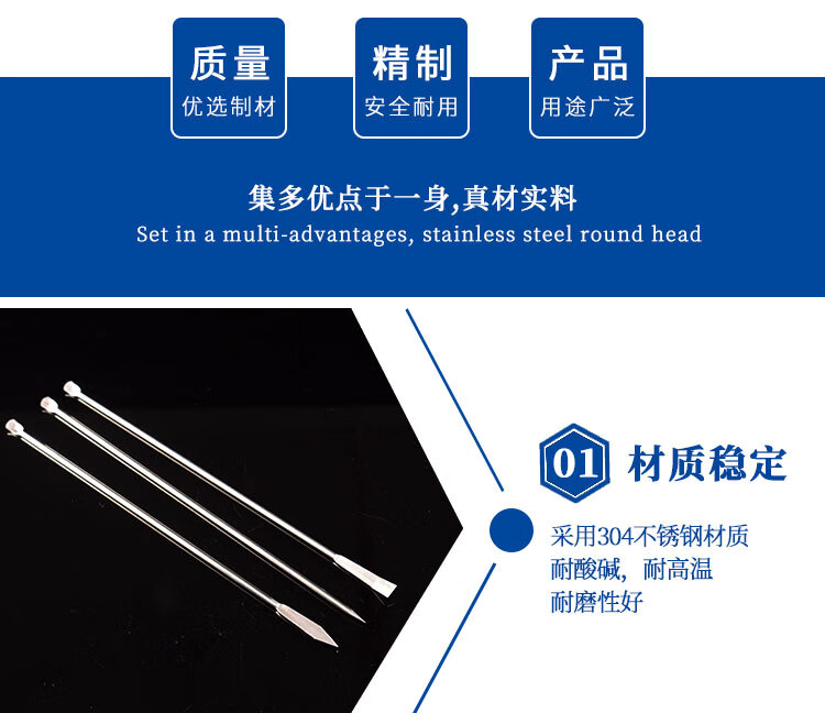 海斯迪克 实验室取样勺 KY60-4 不锈钢 220mm长 3mm杆径 3件 1套