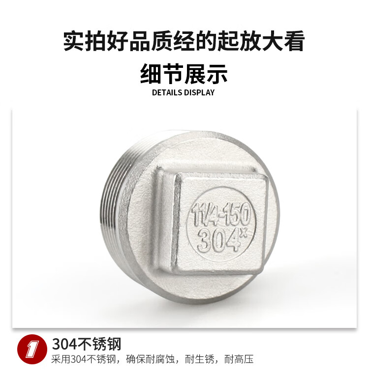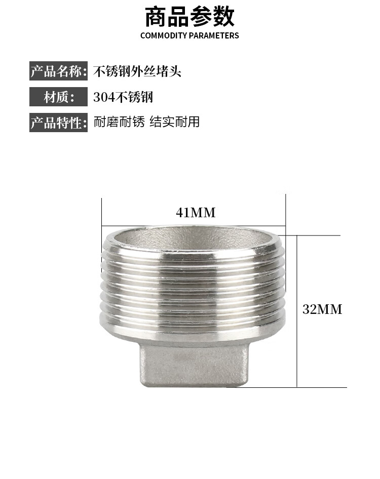 赫思迪格 304不锈钢外丝堵头 HGJ-545 DN15-1/2 1个