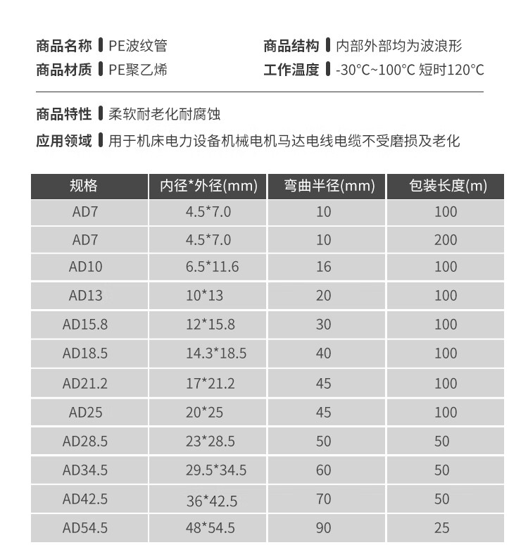 赫思迪格 PE塑料波纹管 HGJ-432 AD25 100米 1个