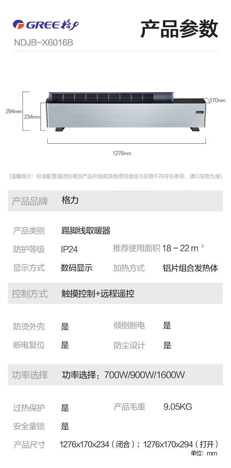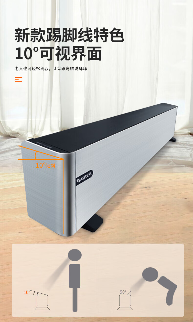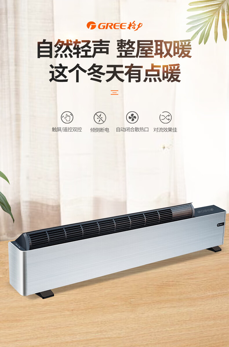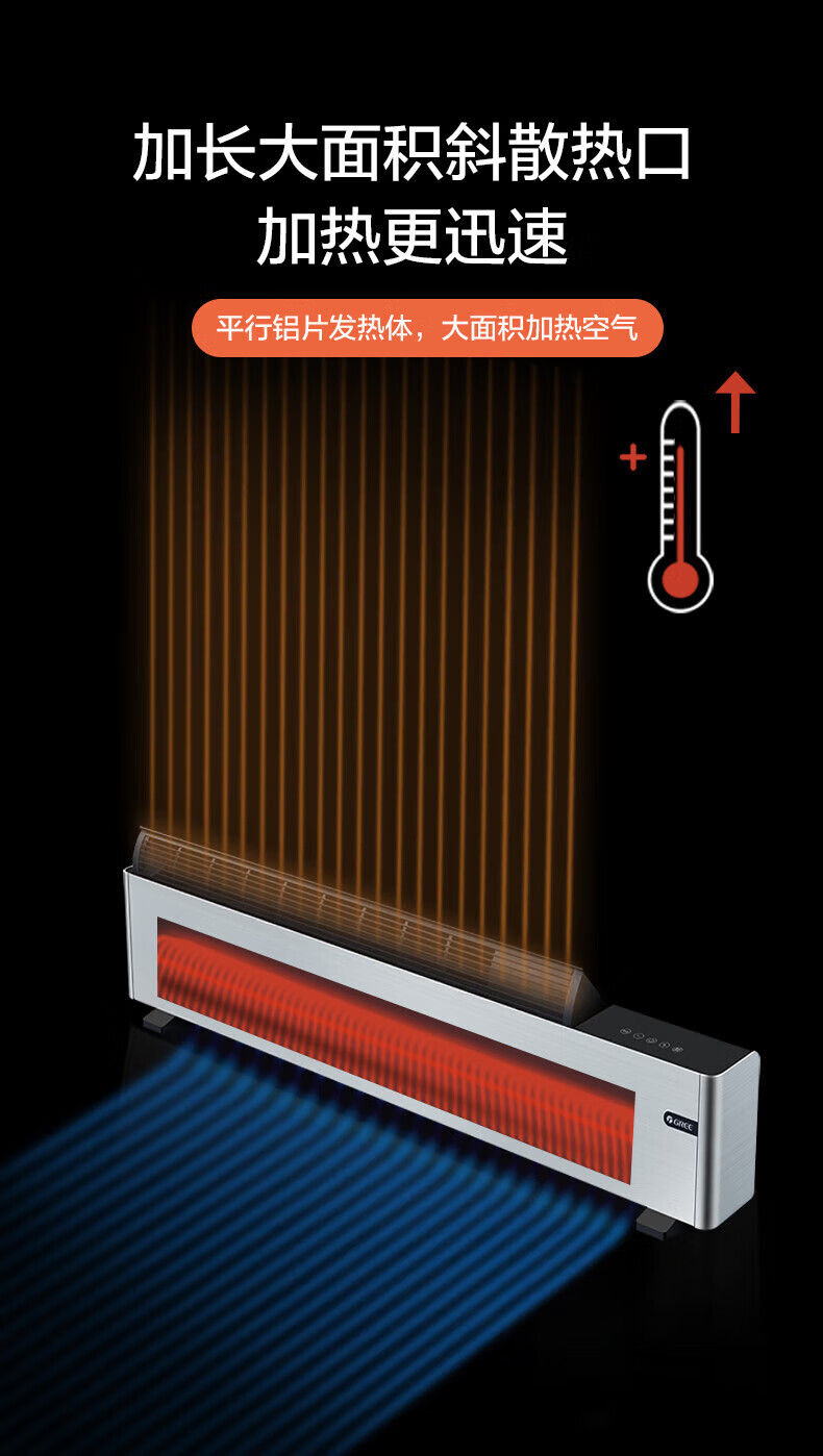 格力 踢脚线取暖器 NDJB-X6016B 三档调温(700W/1900W/1600W) 1台