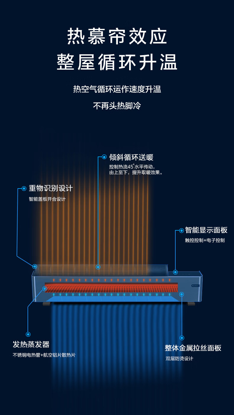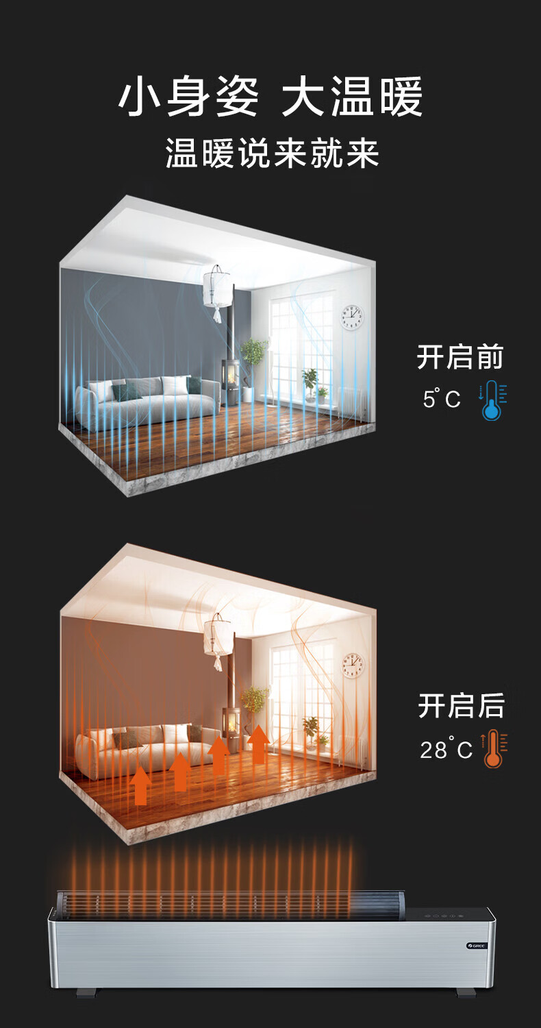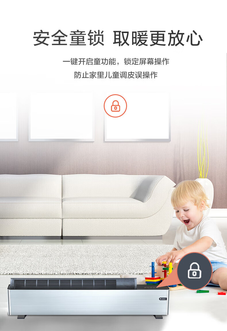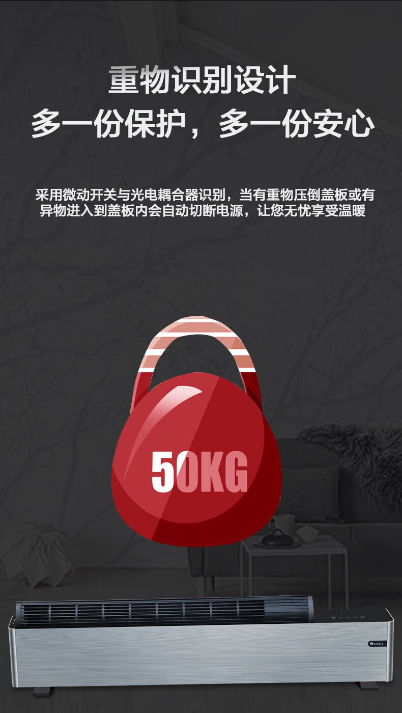 格力 踢脚线取暖器 NDJB-X6016B 三档调温(700W/1900W/1600W) 1台