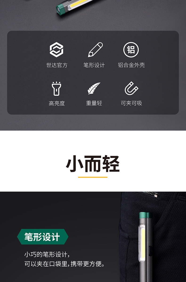 世达 磁性笔形工作灯 05235 三挡调节 常规双照明款 1个