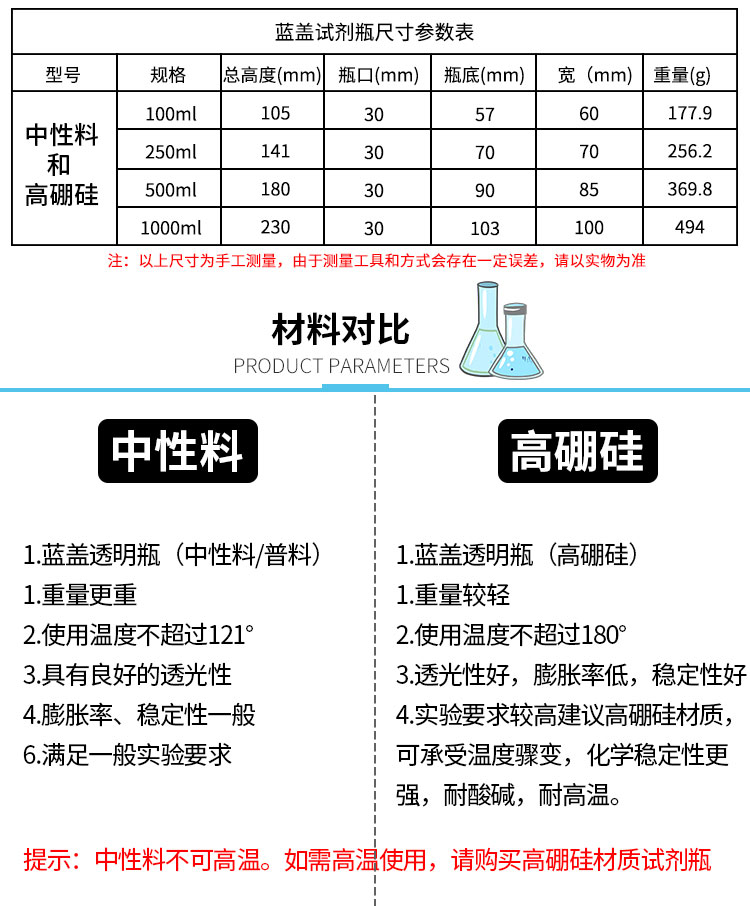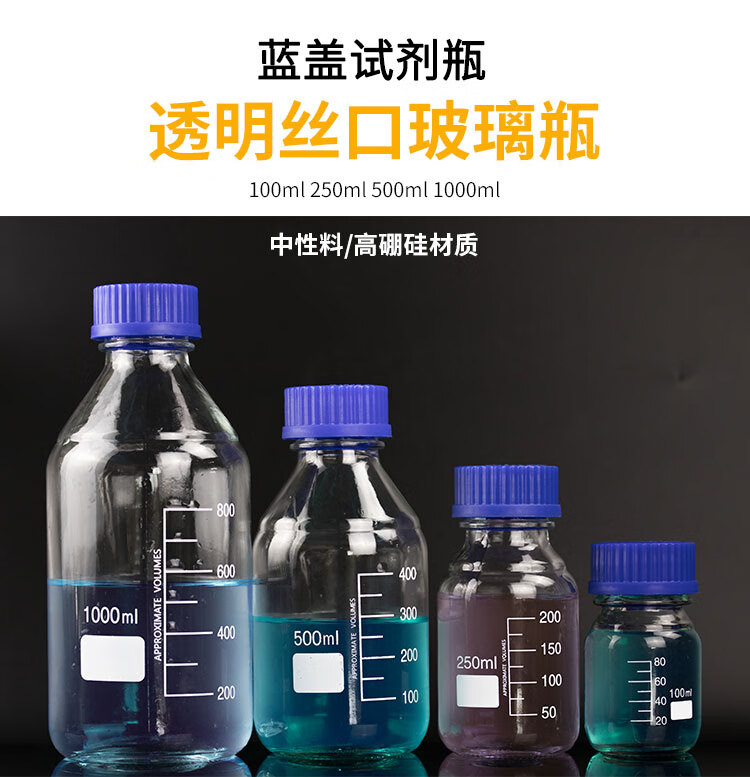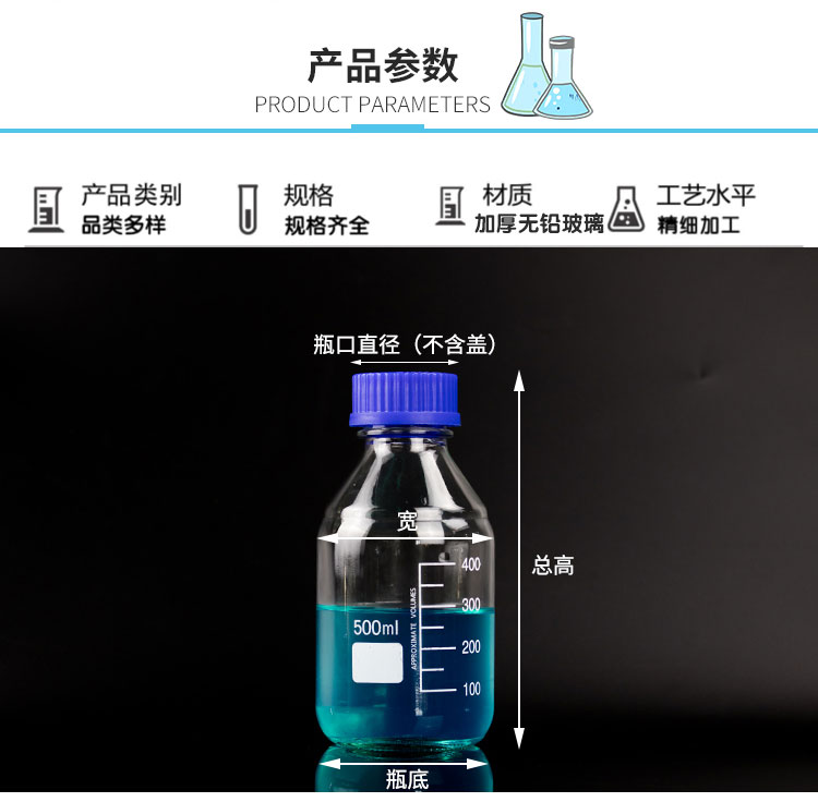 海斯迪克 蓝盖试剂瓶 KY61-3 中性料玻璃 透明 500ml 1个