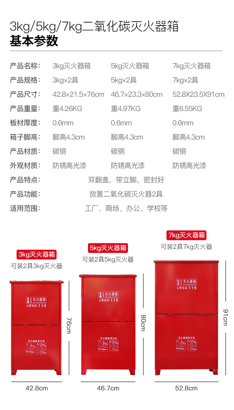 援邦 灭火器箱 红色 厚0.6MM 适用7kg*2 1个