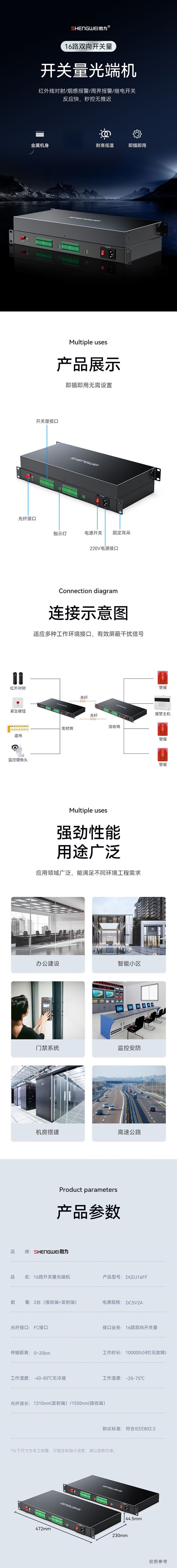 胜为 开关量光端机 DGDJ16FF 黑色铁壳 16路双向 1对
