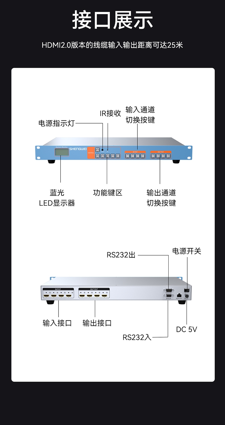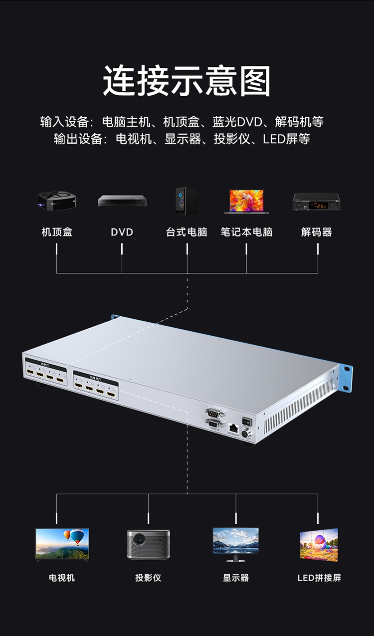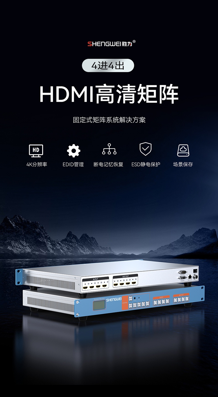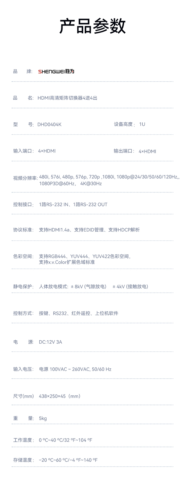 胜为 HDMI矩阵切换器 DHD0404K 银色铁壳 1U机架式 4进4出 1个