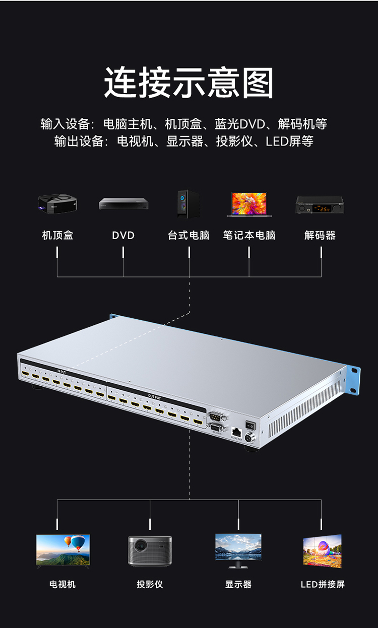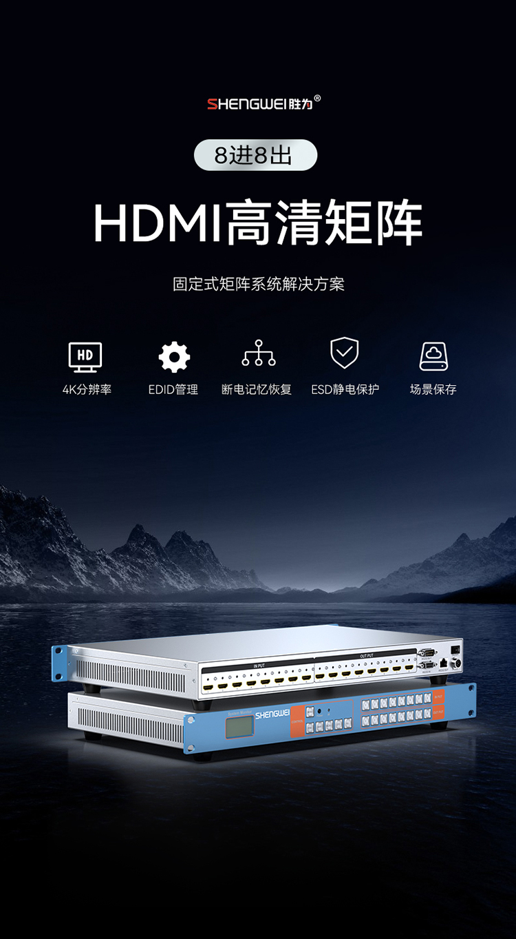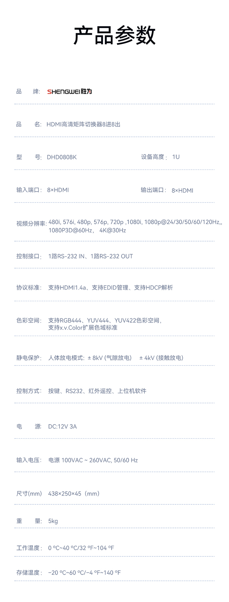 胜为 HDMI矩阵切换器 DHD0808K 银色铁壳 1U机架式 8进8出 1个