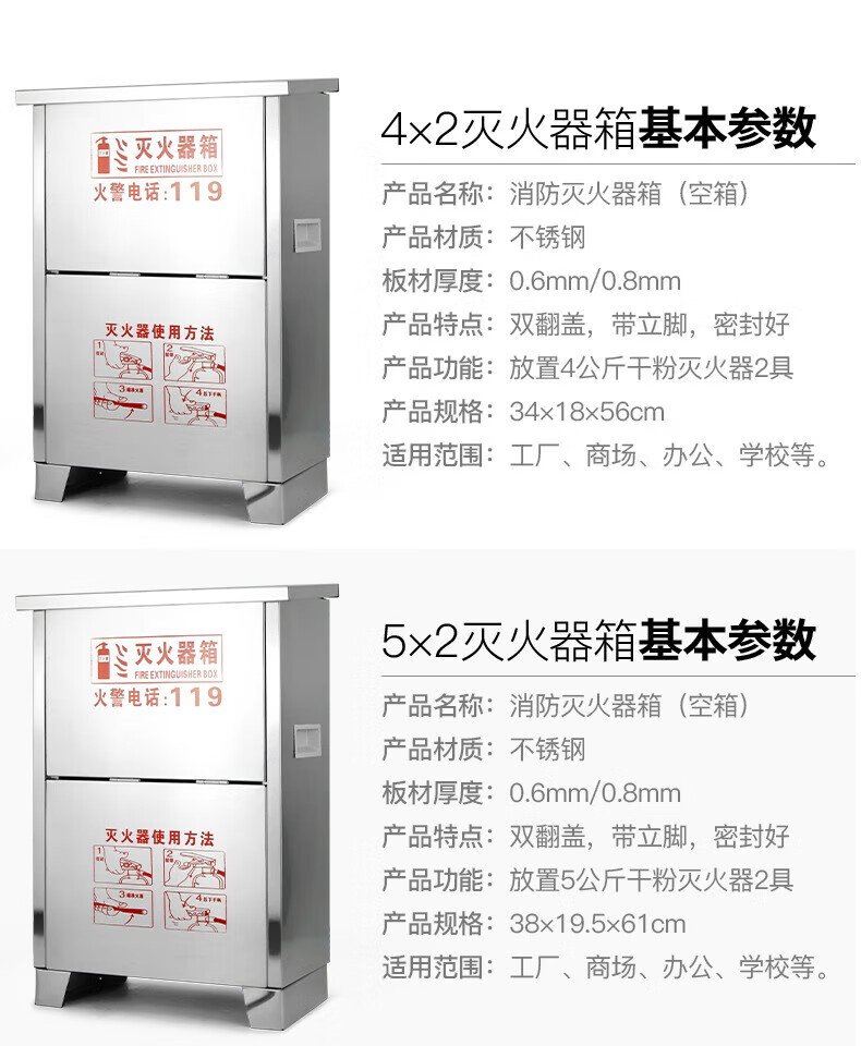 304不锈钢灭火器箱 可放3kg*2