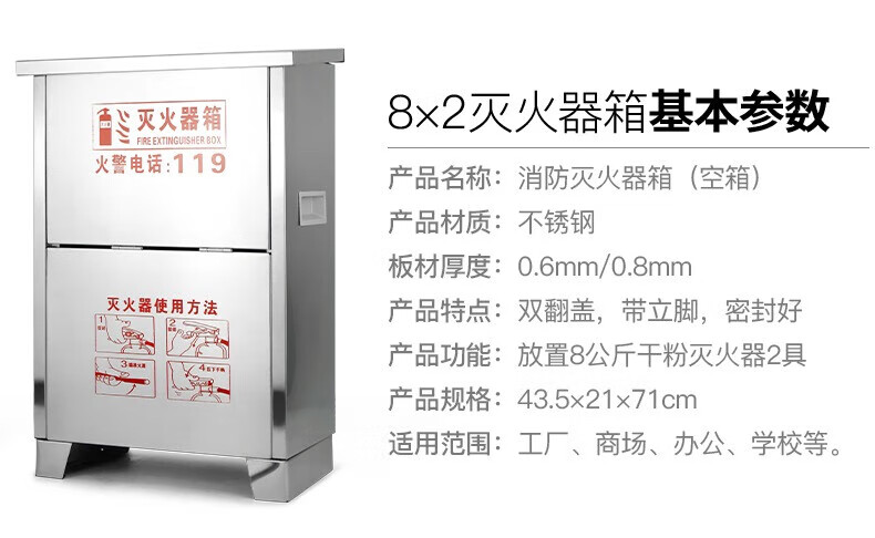 304不锈钢灭火器箱 可放8kg*2