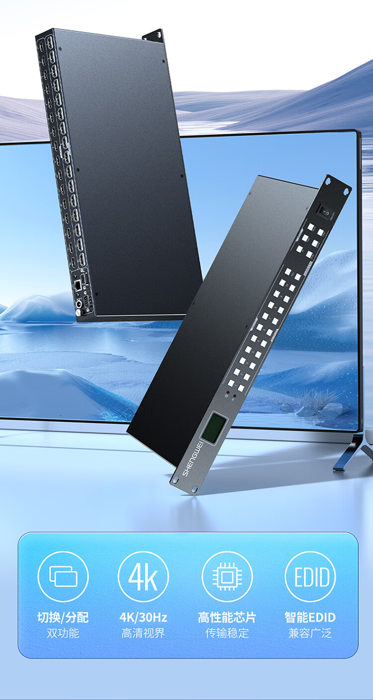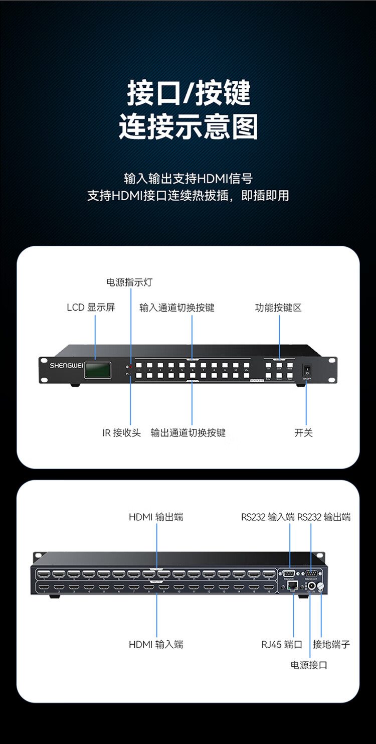 胜为 HDMI无缝矩阵切换器 DHJ1616K 黑色铁壳 1U机架式 16进16出 1个