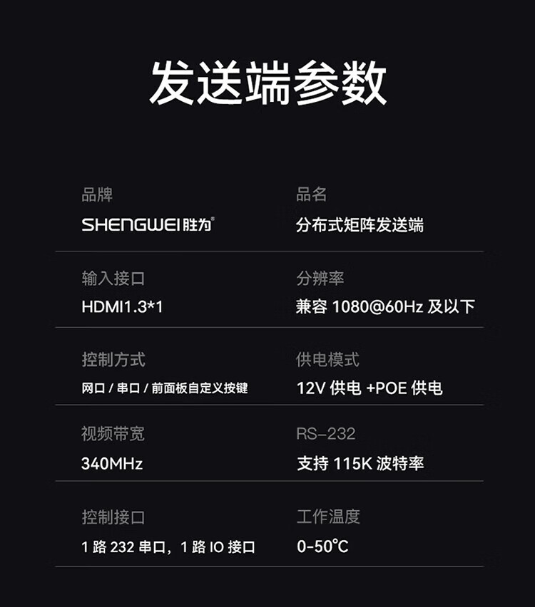 胜为 分布式矩阵处理器 DHX300AB 黑色铁壳 发送端+接收端 2个 1套