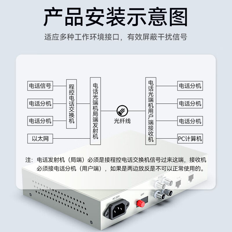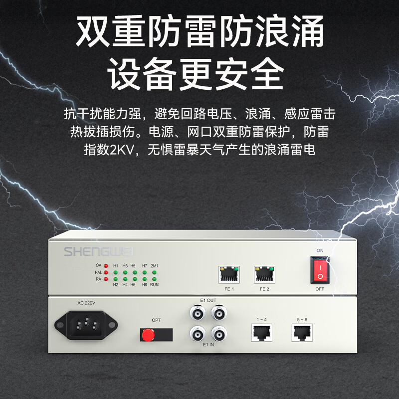 胜为 综合业务光端机 D1E02P01 铁壳 桌面式 1路E1+2路电话+2路百兆网 1对