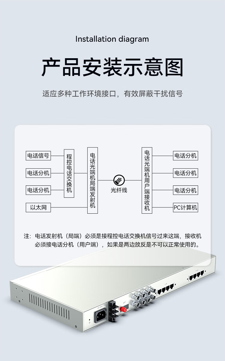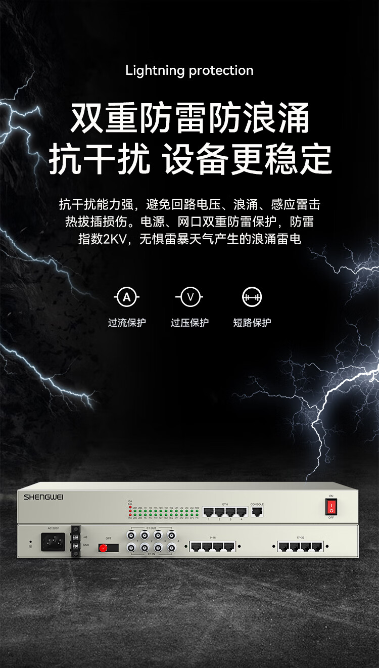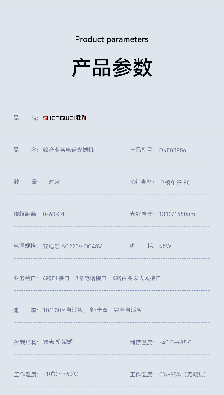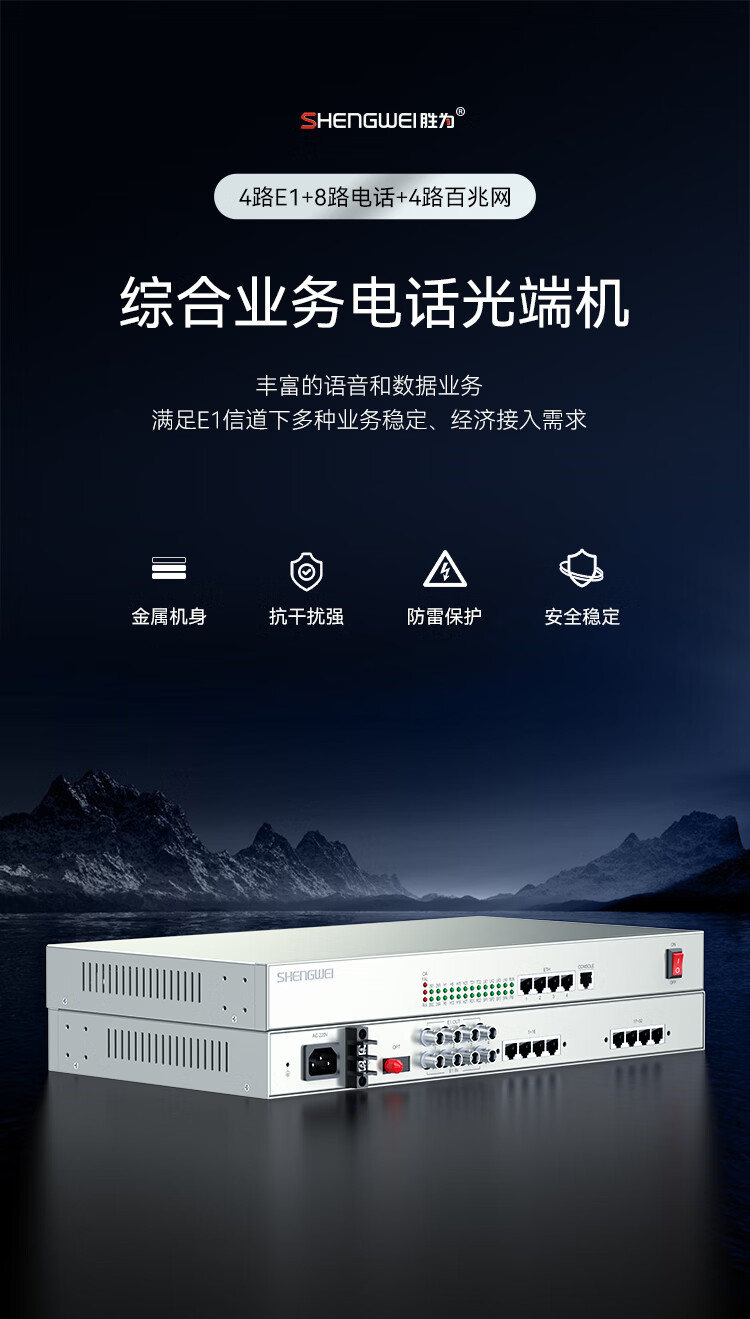 胜为 综合业务光端机 D4E08P06 铁壳 机架式 4路E1+8路电话+4路百兆网 1对