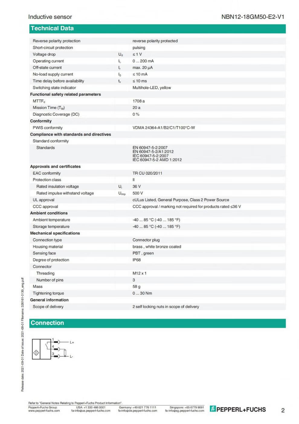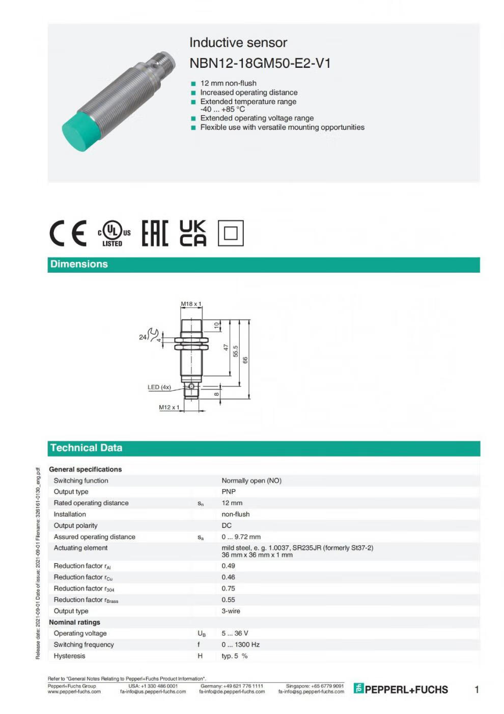 倍加福 电感式传感器/接近开关 (326161-0130)NBN12-18GM50-E2-V1 1个