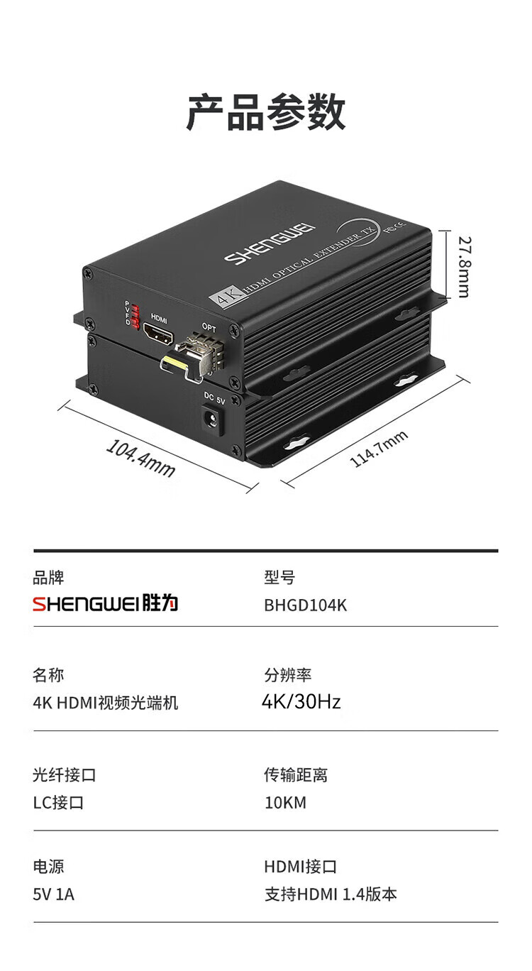 胜为 HDMI视频光端 BHGD010P 铝壳黑色 1路 1对