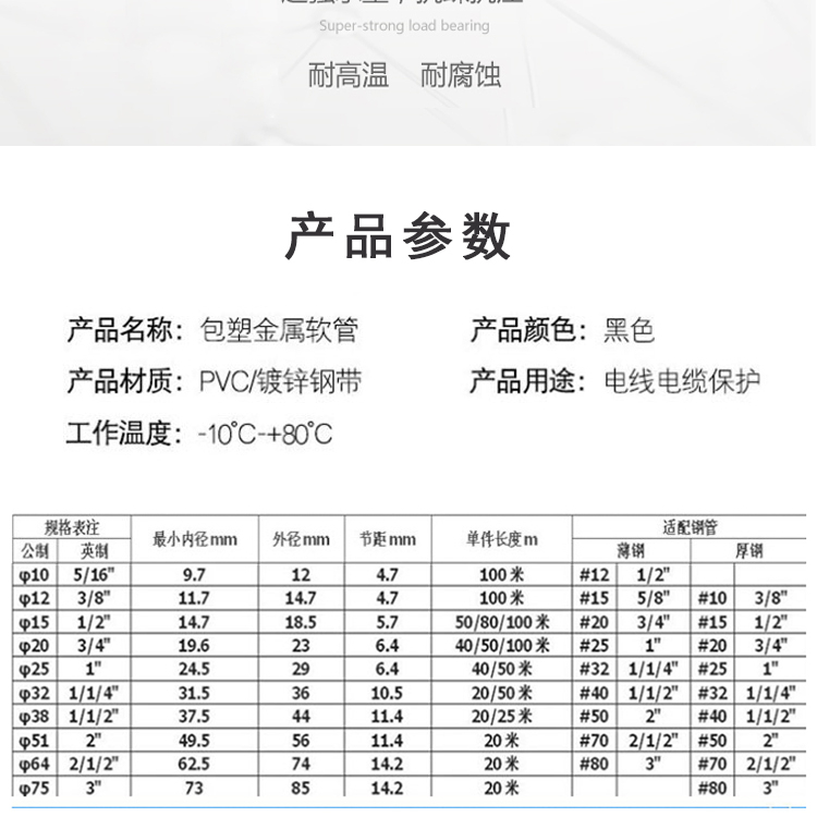 国产通用 包塑穿线金属软管 普通-内径75 10米 1卷