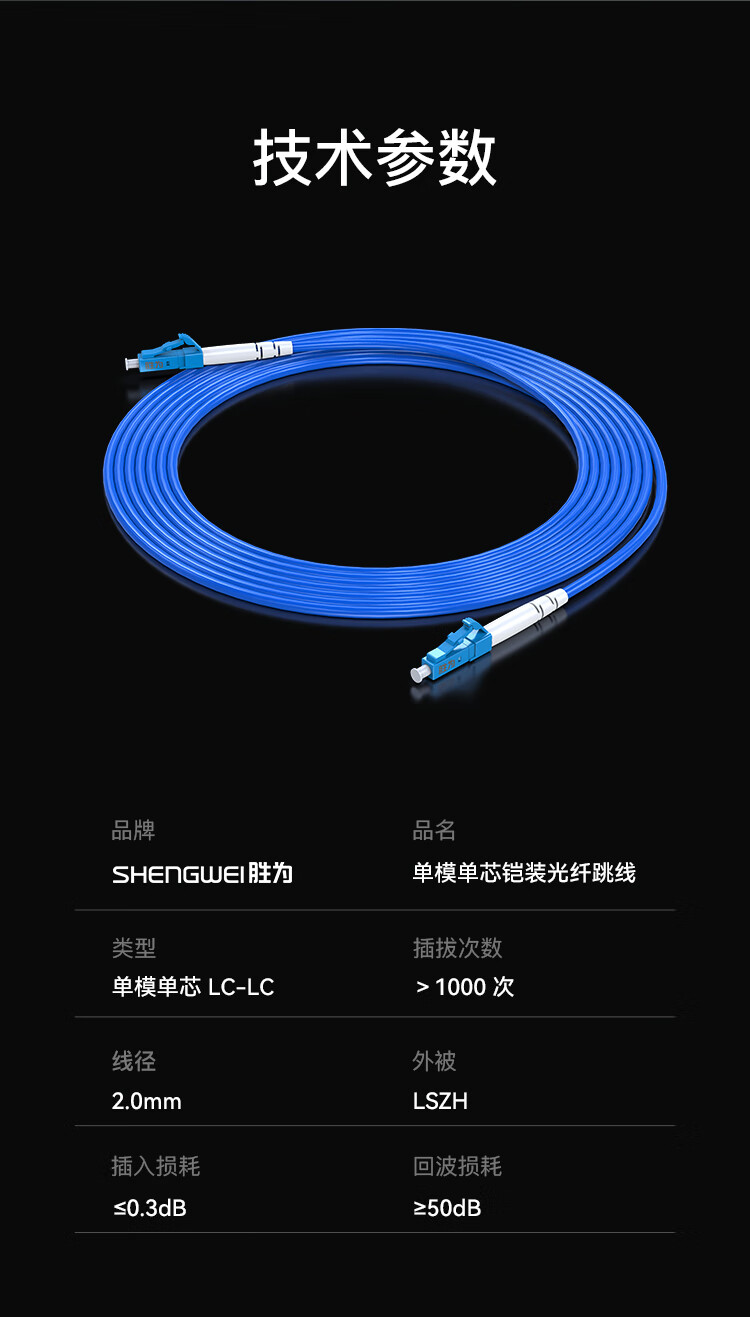 • 商品名称:胜为 LC-LC 单模单芯铠装光纤跳线